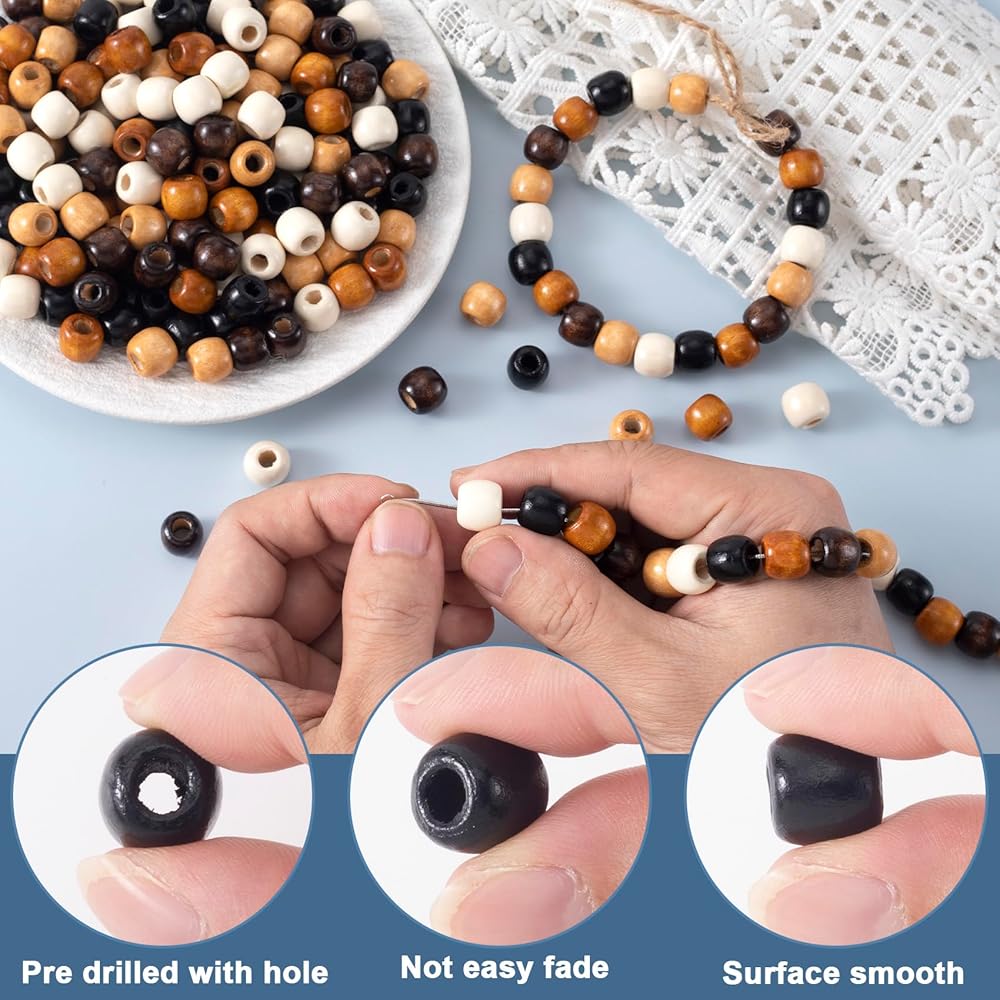 الخشب الطبيعي: هذه الخرزات المستديرة مصنوعة من الخشب الممتاز + لمسة نهائية من الطلاء + سطح أملس، مريحة عند اللمس.