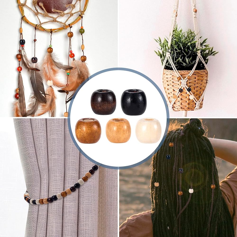 خرزات هولوودين كبيرة للشعر، خرزات شعر مكرمية، خرزات شعر كبيرة، خرزات شعر كبيرة مصنوعة يدويًا، خرزات فضفاضة كلاسيكية، خرزات خشبية مستديرة، خرزات خشبية، التصميم الإلكتروني: يمكن ربط الحبال السميكة بسهولة من خلال هذه الخرزات الخشبية للحرف اليدوية.