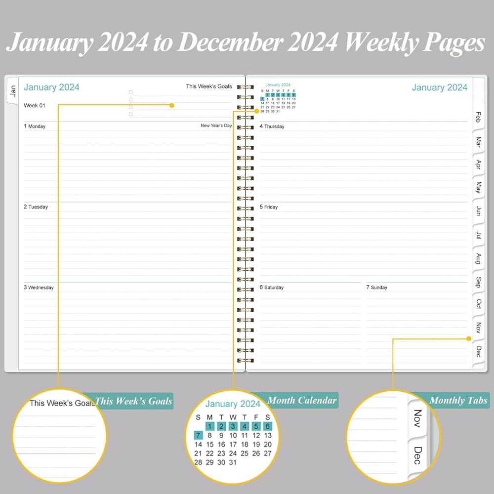2024 Weekly & Monthly Planner, simple and elegant academic planner 2024 which could keep you organized everywhere you go.