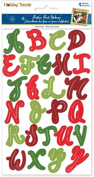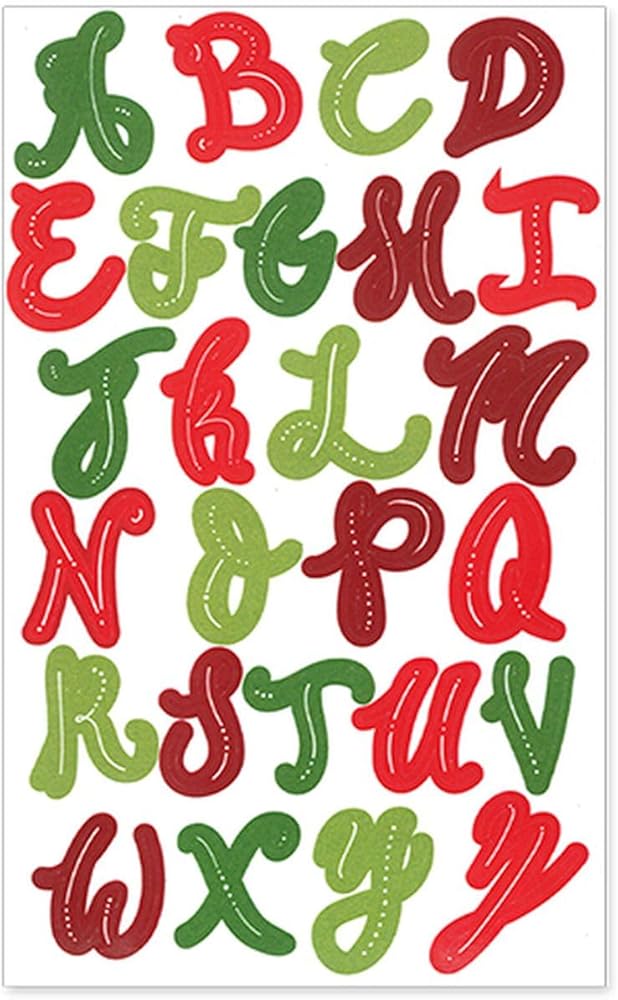 Adorn your holiday arts and crafts projects with charming accents like these Christmas Stickers. This collection of adhesive embellishments features a green and red alphabet pattern. Add them to Christmas cards, scrapbook spreads, gift boxes, and more.