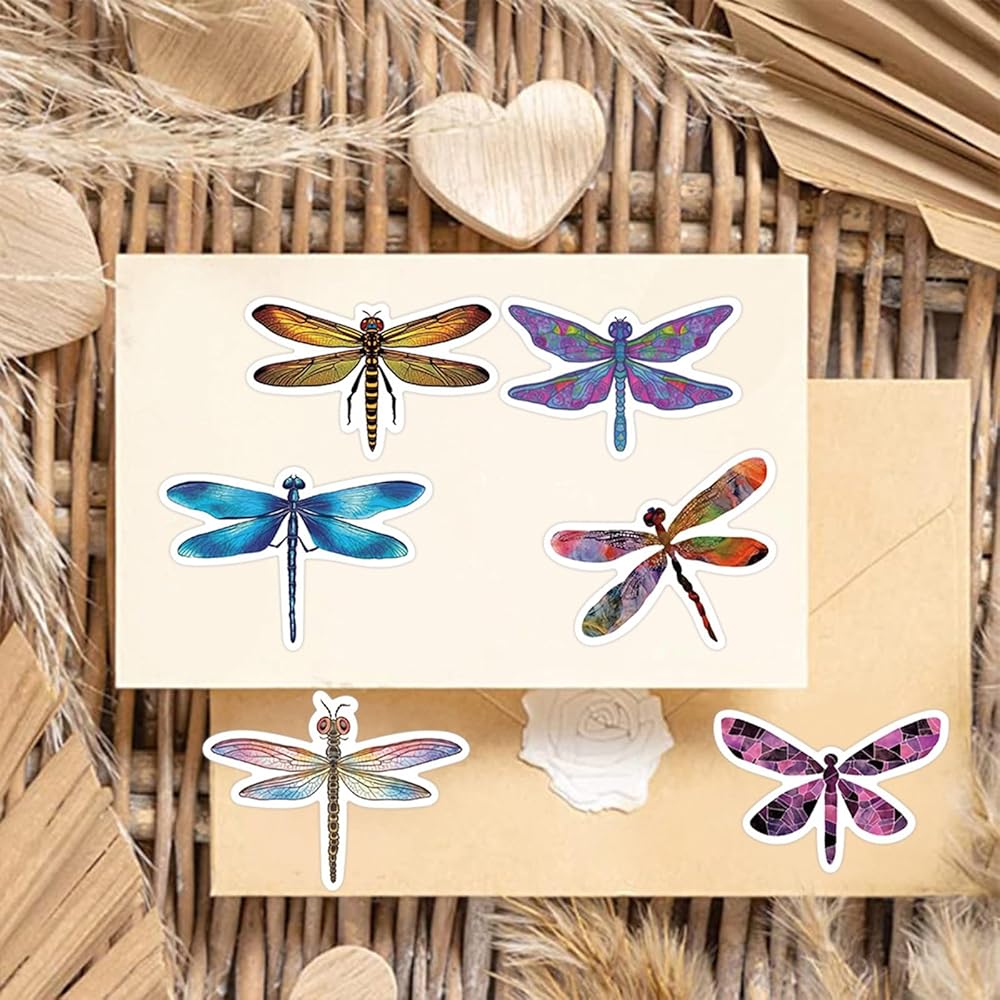 53 Pieces Dragonfly Stickers Beautiful Dragonfly Stickers Water Bottle Stickers Waterproof Stickers Insect Stickers for Waterbottle Decals Car Laptop Skateboard Luggage Guitar for Teens Girls Boys (Dragonfly)