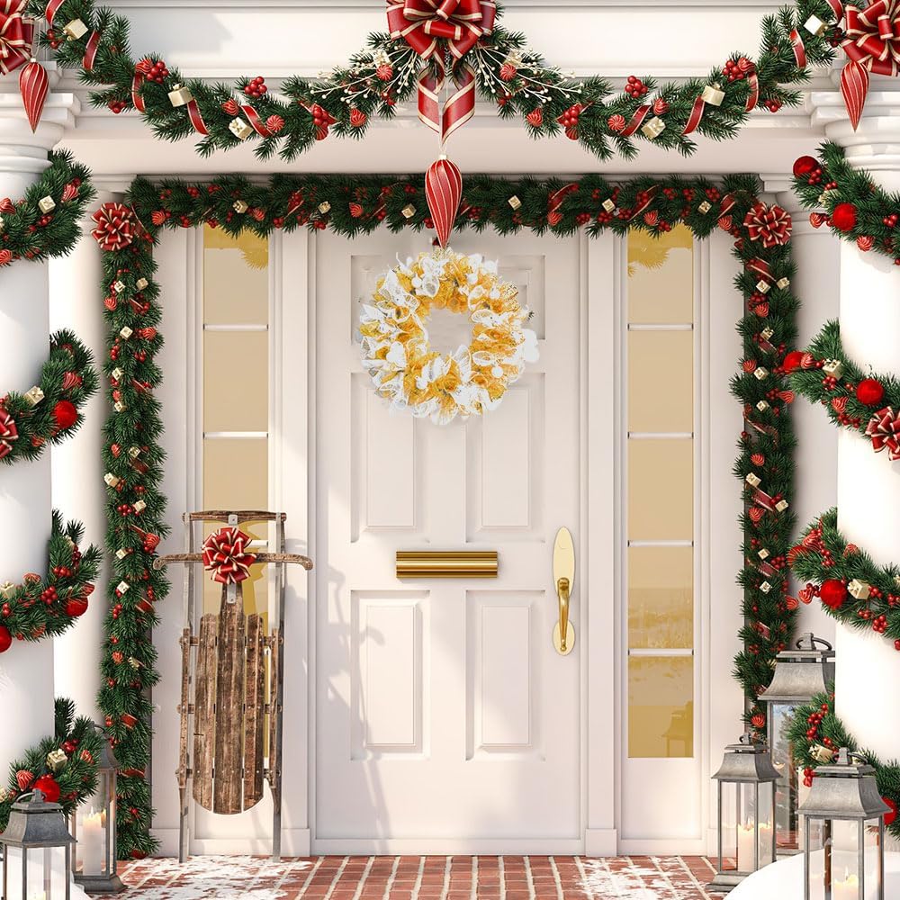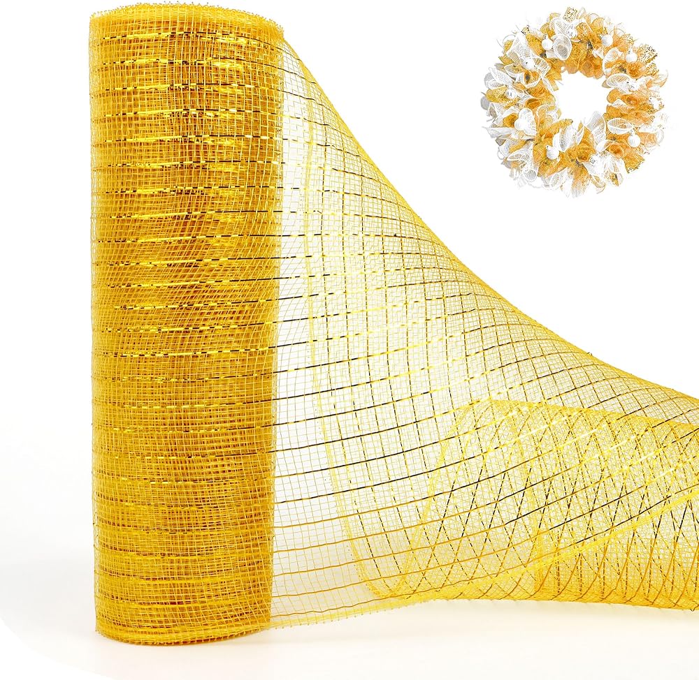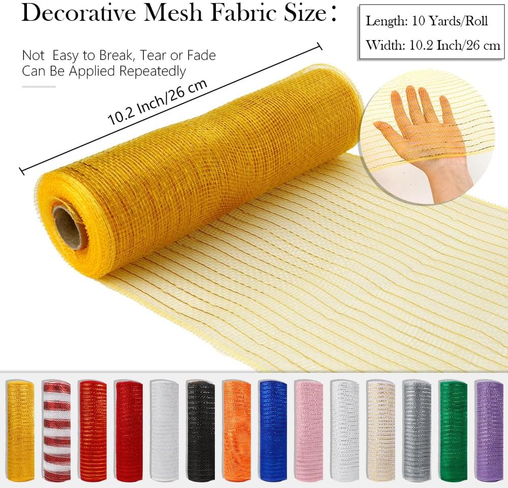 High Quality Material: The Metallic mesh ribbon are made of gold foil polypropylene, soft, lightweight, waterproof, elastic, the color is not easy to fade, our mesh ribbons hold their shape well, durable and reusable. Available in a variety of colors to meet your holiday decorations, can be applied to both indoor and outdoor, bring you joy and sense of accomplishment