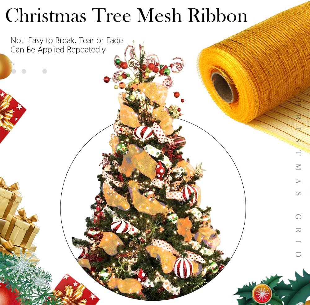 Metallic Mesh Ribbon Christmas Tree Mesh Ribbon Wide Ribbon for Christmas Tree Decorative Mesh Ribbon Rolls Deco Mesh for DIY Crafts Wreaths Swags Wedding Garland Party Supplies Christmas Tree Decoration Halloween Party St. Patrick's Day Decoration