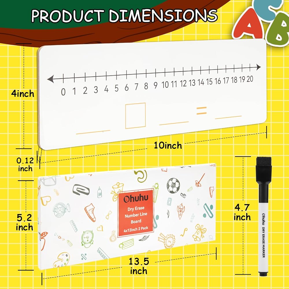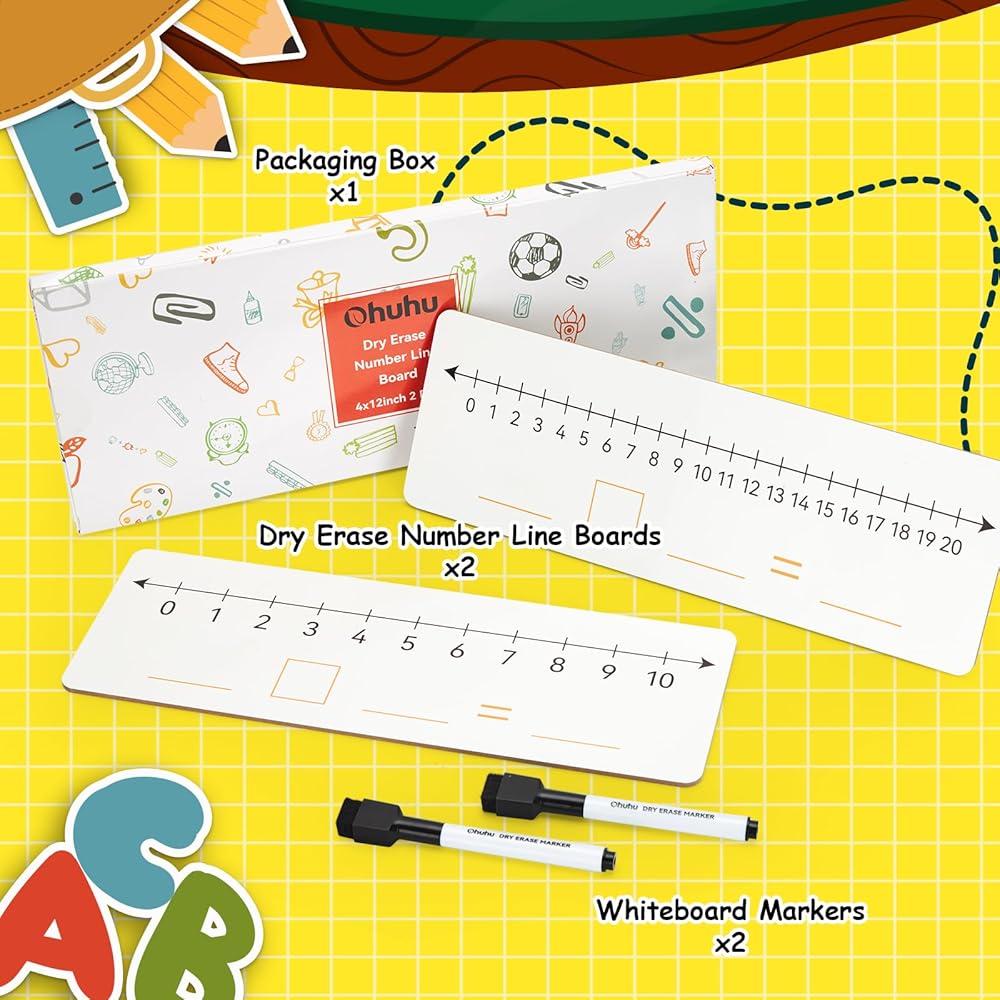 لوحات بيضاء بخط أرقام من Ohuhu مكونة من قطعتين مقاس 10.16 × 30.48 سم - لوحات مسح جافة مزدوجة الجوانب - خط الأرقام 0-20 على جانب واحد و0-10 على الجانب الآخر - مجموعة مناورات الرياضيات بما في ذلك 2 لوح حاسوب محمول و2 علامات للطلاب