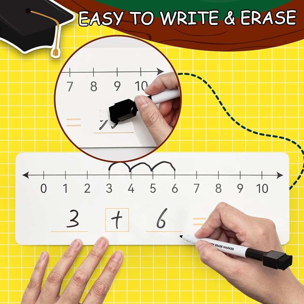 ملحقات متنوعة - تتضمن هذه المجموعة الشاملة كل ما تحتاجه للبدء على الفور. يتميز بوجود قلمين للسبورة البيضاء عالي الجودة، كل منهما مجهز بأغطية ممحاة مريحة. بمجرد فتح العبوة، لن تحتاج إلى أي مواد إضافية - ما عليك سوى الإمساك بلوحة خط الأعداد والقفز مباشرة إلى ممارسة الجمع والطرح!
