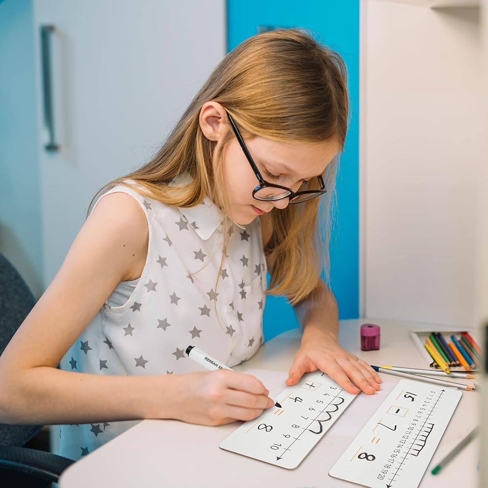 ألواح بيضاء مزدوجة الجوانب لخطوط الأرقام 0-20/0-10 - تتضمن مجموعة لوحات المسح الجافة الصغيرة من Ohuhu لوحتين أبيضتين لخطوط الأرقام مقاس 4 × 12 بوصة، مصممة خصيصًا لممارسة الجمع والطرح. تشتمل كل لوحة على قلم مسح جاف، وهي خفيفة الوزن وسهلة الحمل، مما يجعلها مثالية للاستخدام في المنزل وفي الفصل الدراسي. أفضل جزء؟ يتميز أحد الجانبين بخط أرقام من 0 إلى 10، والجانب الآخر به خط أرقام من 0 إلى 20، لذلك يمكنك قلبه لتعزيز تعلم وفهم الجمع والطرح.
