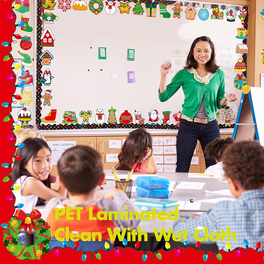 74 جهاز كمبيوتر شخصي لديكور لوحة إعلانات عيد الميلاد، زينة لعطلة الشتاء السعيدة، شمعة تخزين لرجل الثلج والزنجبيل، مجموعة قطع من الورق المقوى السميك للفصل الدراسي، والباب، والنافذة، وحفلة عيد الميلاد