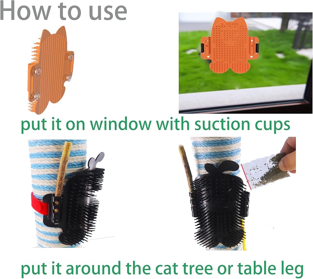 Usage 2: Put 4 vacuum plastic suction cups in the holes of the cat groomer, and put it on the window, doors of glasses.