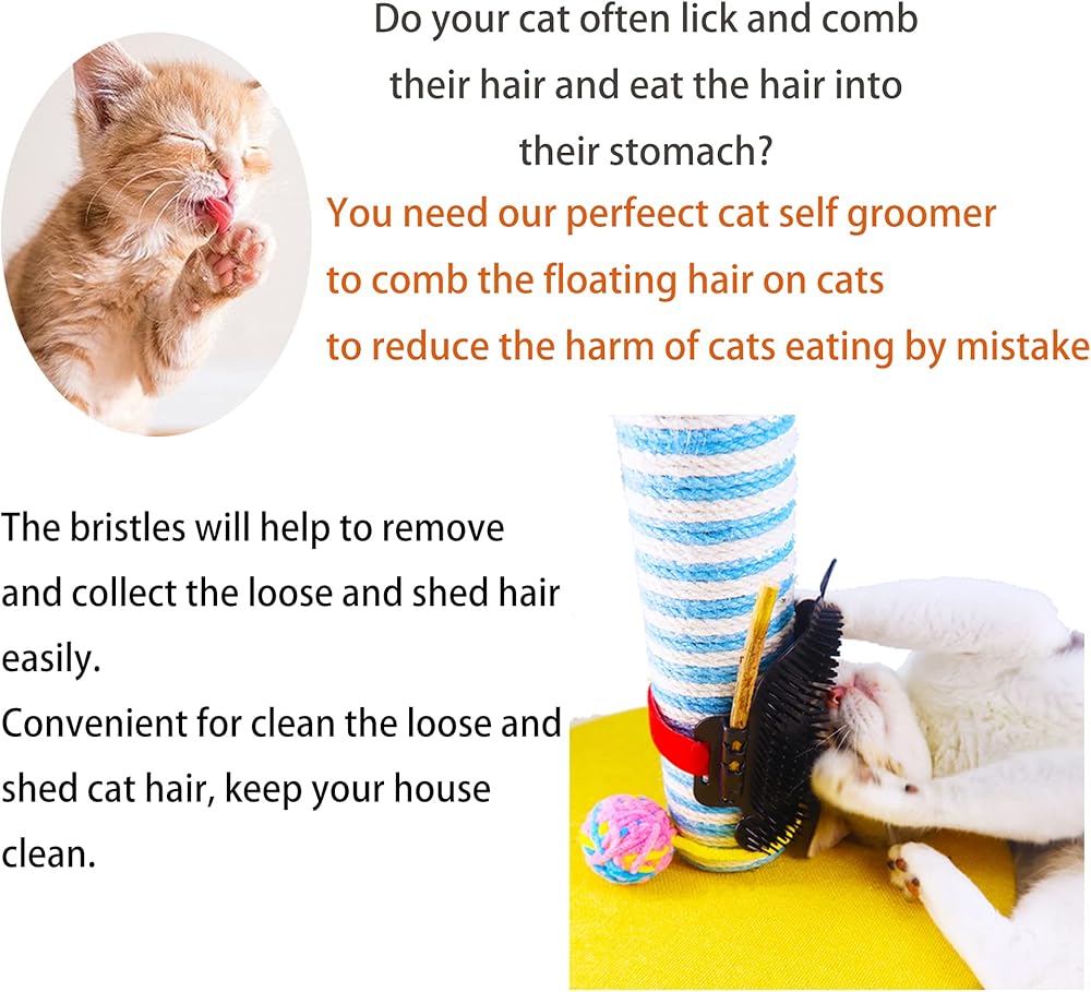 ✮Provide your cat with a constant source of rubbing and grooming pleasure, lightening your burden when you are busy on other things, the self groomer allows your sweet cats help itself while have fun with it.