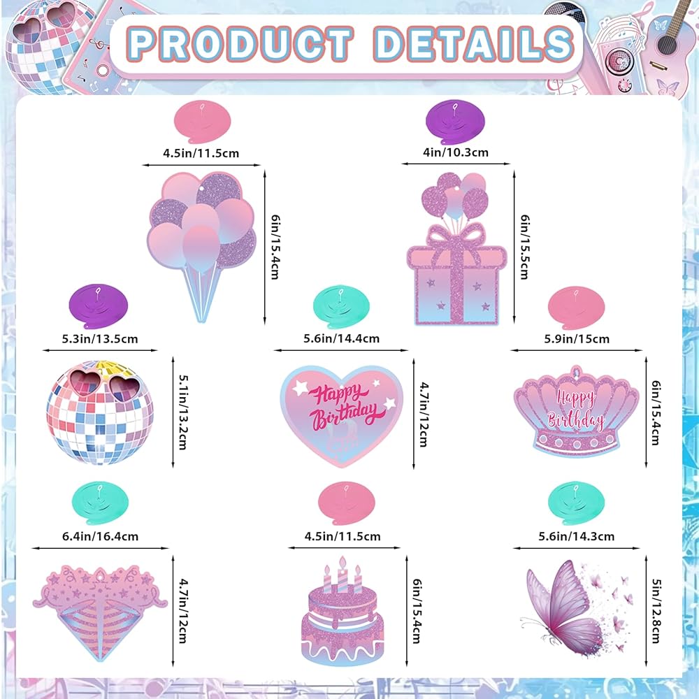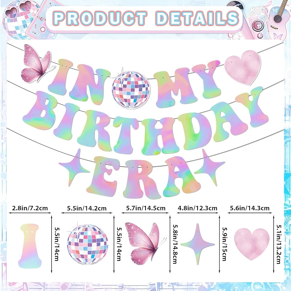 • تشمل العبوة: لافتة ديكورات حفلات الفتيات الخاصة بنا تتضمن قطعة واحدة لامعة في لافتة In My Birday Era، و8 × أنماط للمغني، و8 × ثلاثة ألوان من مستلزمات الدوامات المعلقة من الرقائق المعدنية (3 × وردي، 2 × أرجواني، 3 × أزرق).
