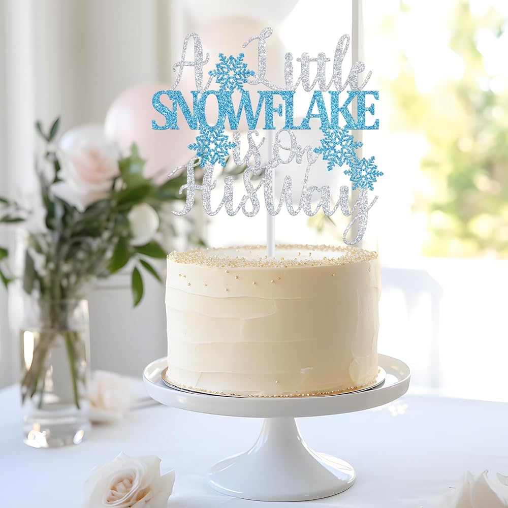 WHAT YOU WILL GET: 1 pcs silver glitter "A Little Snowflake is on Her Way" cake topper, these cake topper is the perfect decoration welcome your friends to your baby shower party.