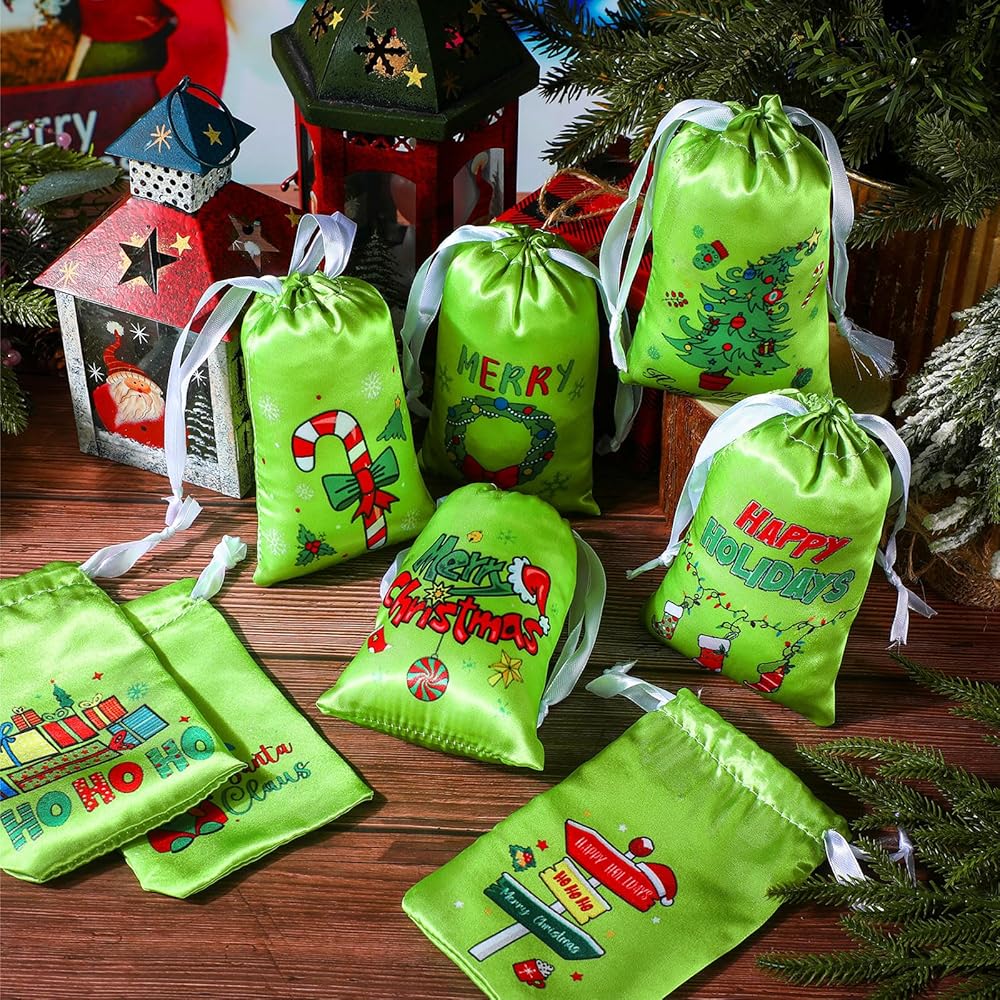Lasting and Soft Material: the Xmas satin goodie bag is made of satin cloth, which is comfortable to touch, and will not cause harm to the human body; It will become part of your Christmas holidays in the next few years