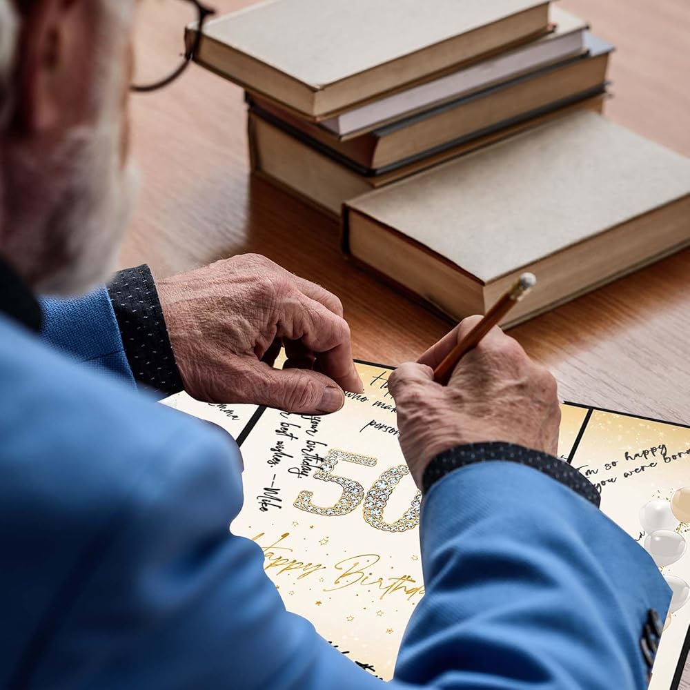 【هدية عيد ميلاد مبتكرة 50】- للأشخاص الذين تبلغ أعمارهم 50 عامًا، هذه هدية عيد ميلاد خاصة جدًا. لا يمكن استخدام كتاب توقيع عيد الميلاد الخمسين كزينة في حفلة عيد الميلاد فحسب، بل يمكن استخدامه أيضًا كتذكارات بعد انتهاء الحفلة.