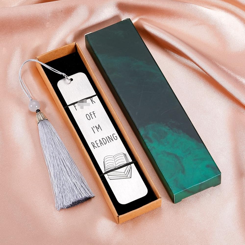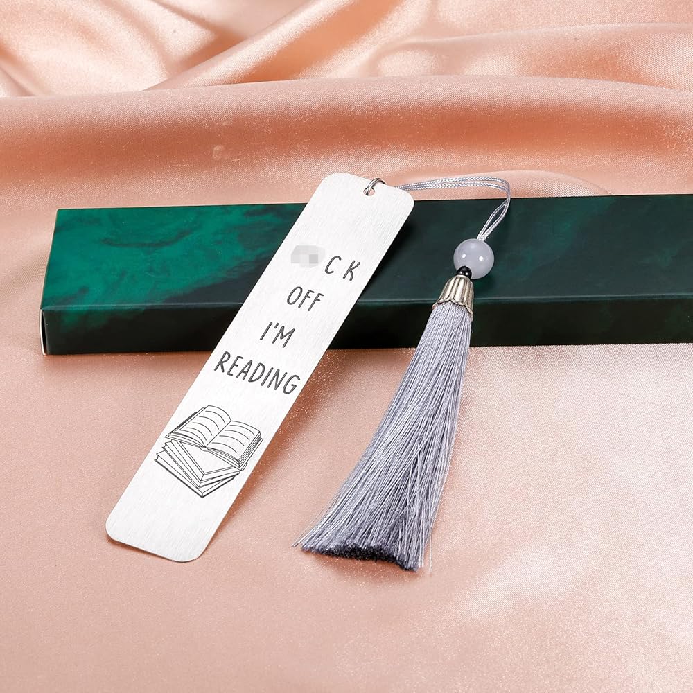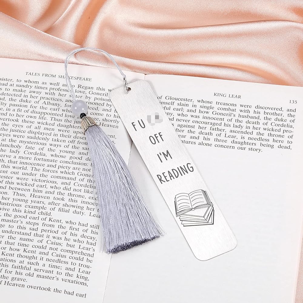 Funny Bookmarks Gifts for Book Lover: The bookmark engraved with humorous message “F**K OFF I'M READING.” Funny gifts perfect for book lovers, reading lovers, book obsessed, book nerds, bookworm, literature lovers. Your book-loving friends gonna love it when they receive this lovely bookmark. Funny gifts perfect for Birthday, Christmas, Stocking Stuffers, White Elephant Gift Exchange, Retirement, Appreciation Week.