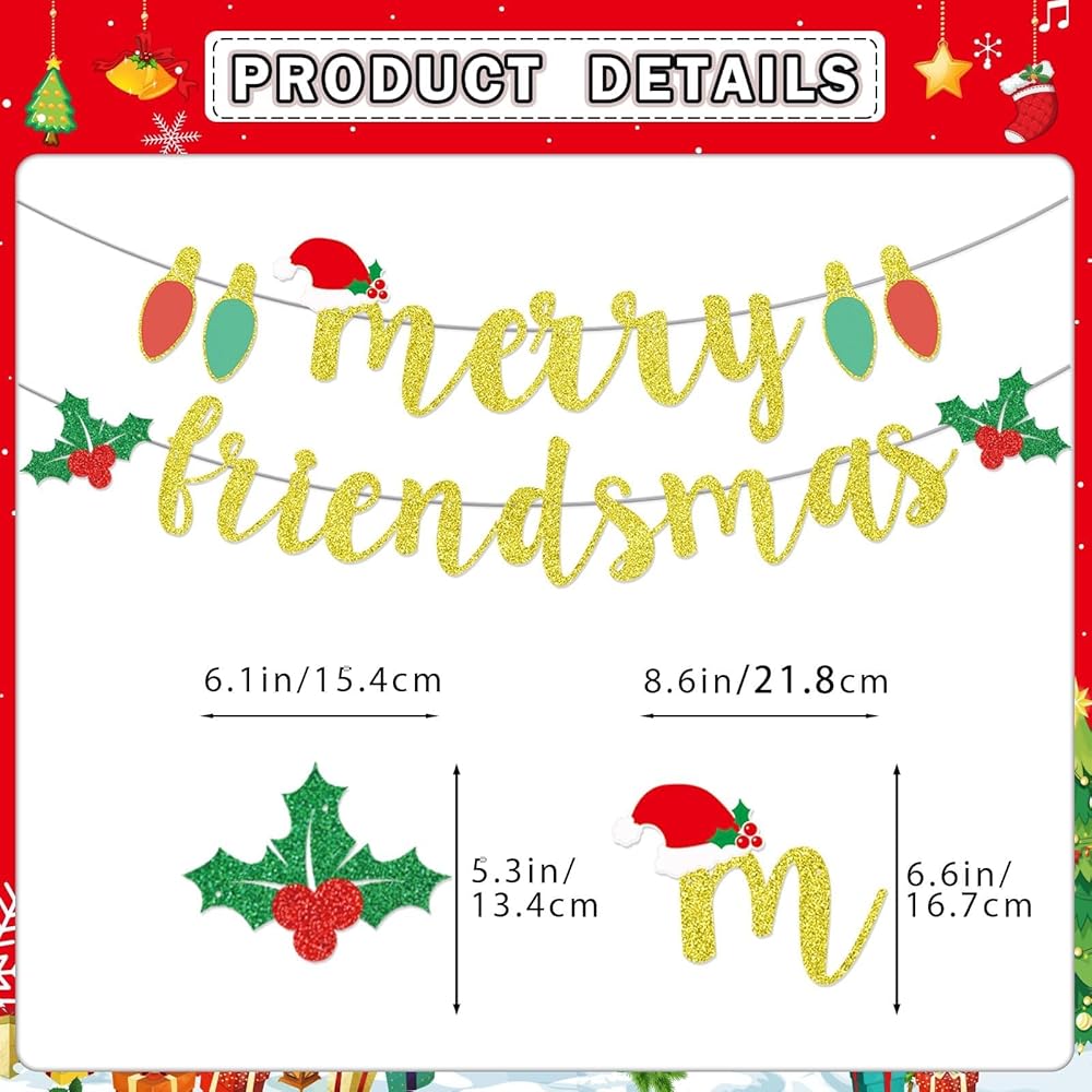 • التصميم: مجموعة لافتة عيد الميلاد مصممة بموضوع Friendsmas كعنصر رئيسي، مطبوعة العديد من عناصر عيد الميلاد، مثل ندفة الثلج والحلوى، مليئة بأجواء احتفالية قوية، ملونة وجذابة، خيار مثالي لعيد الميلاد.