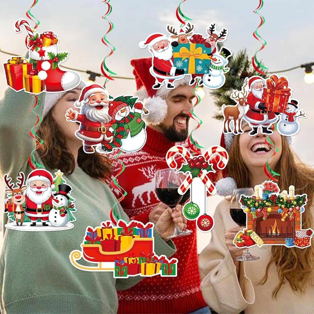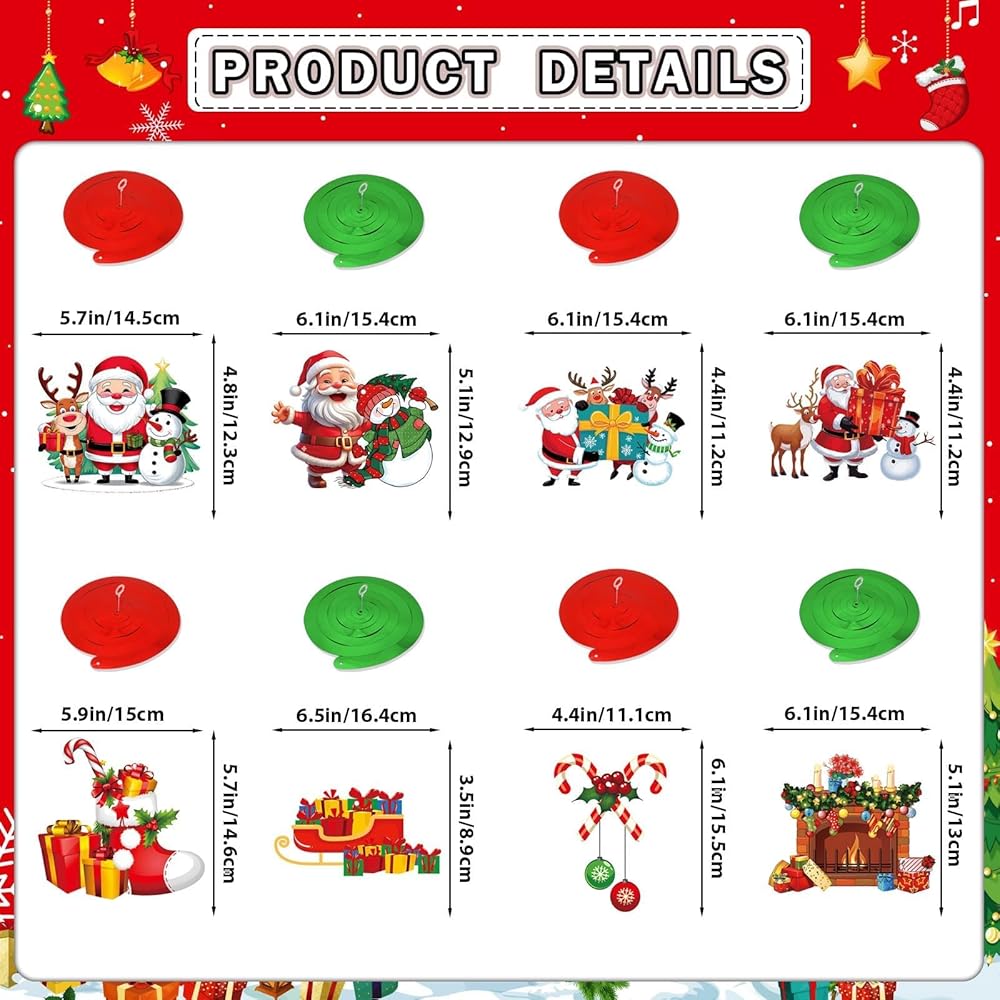 • تشمل العبوة: 1 × لافتة عيد الميلاد "Merry Christmas"، 8 × زينة دوامات معلقة لعيد الميلاد، مع 8 قطع من الورق المقوى المُصمم، 4 × دوامات خضراء 4 × حمراء.