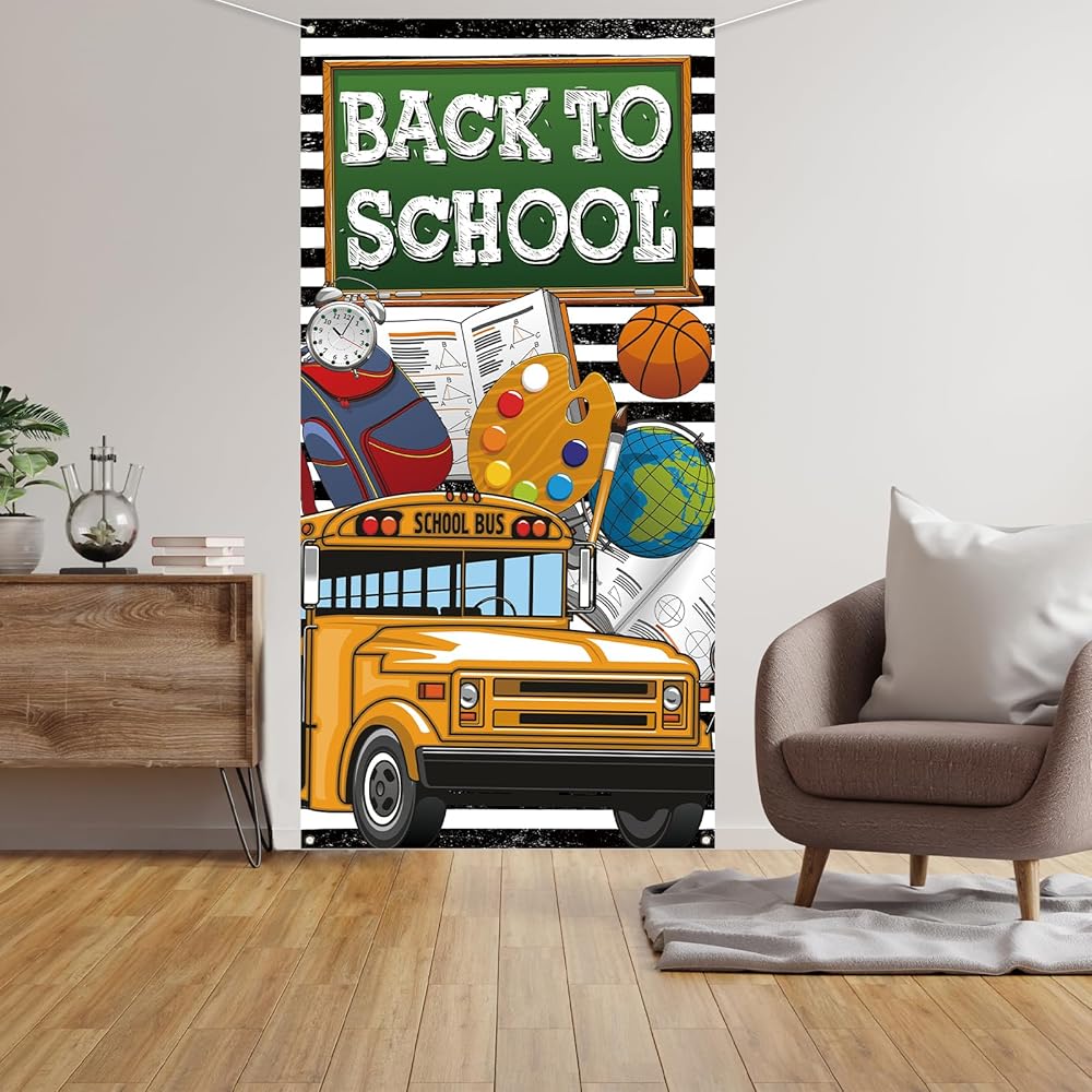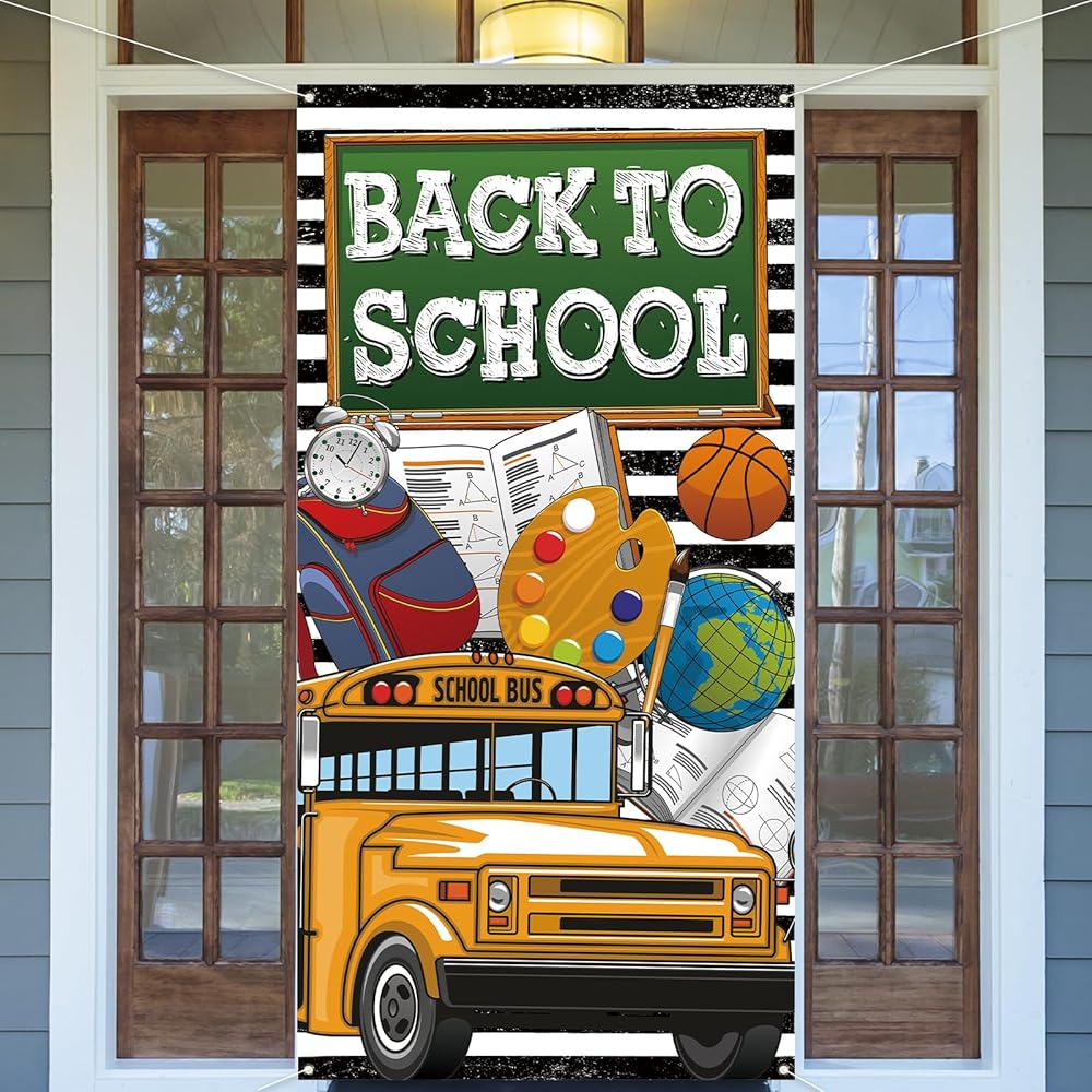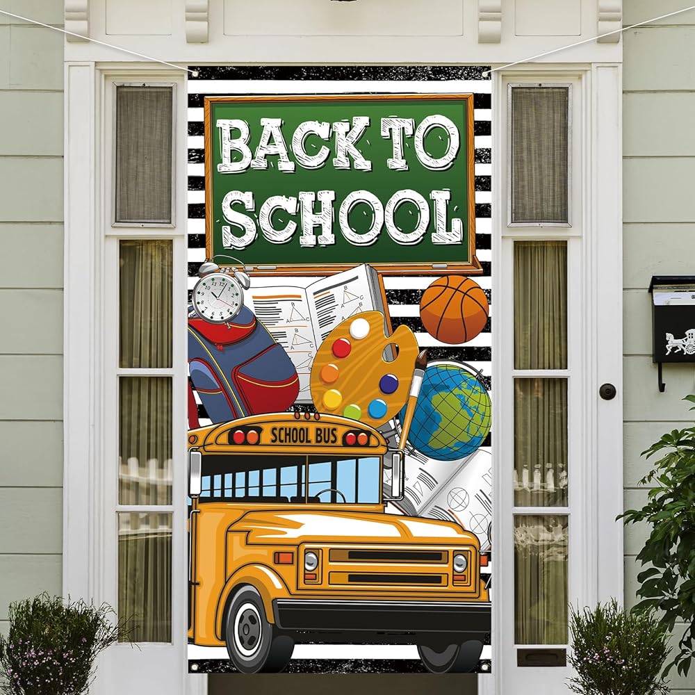 مرحبًا بعودتك إلى غطاء باب المدرسة، خلفية صورة العودة إلى المدرسة، اليوم الأول الأول من ديكورات المدرسة ومستلزماتها للفصول المدرسية المنزلية