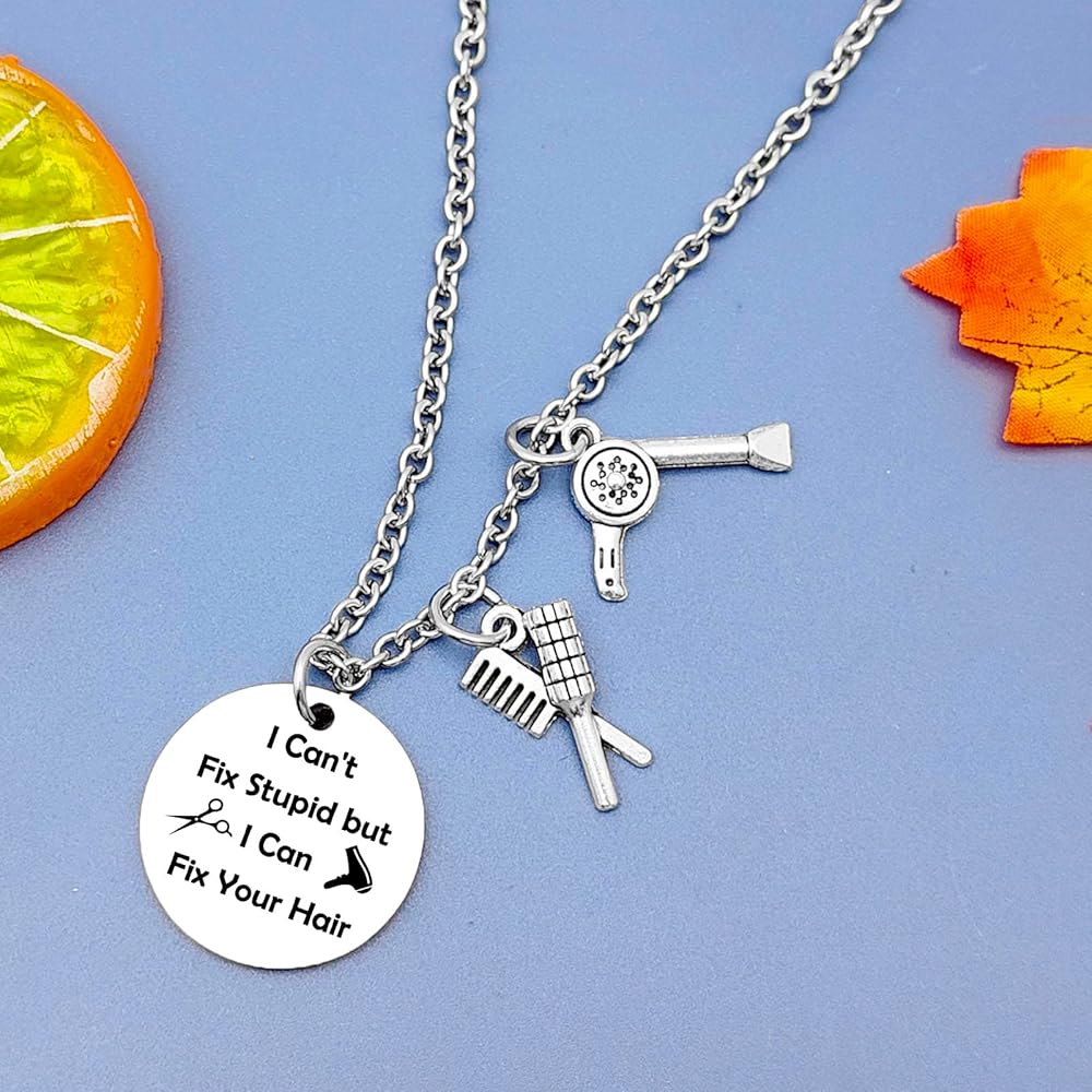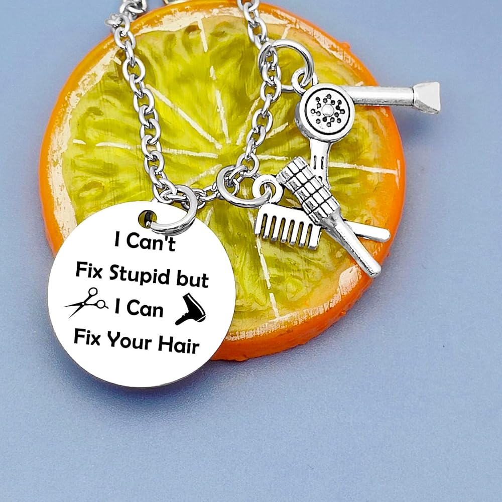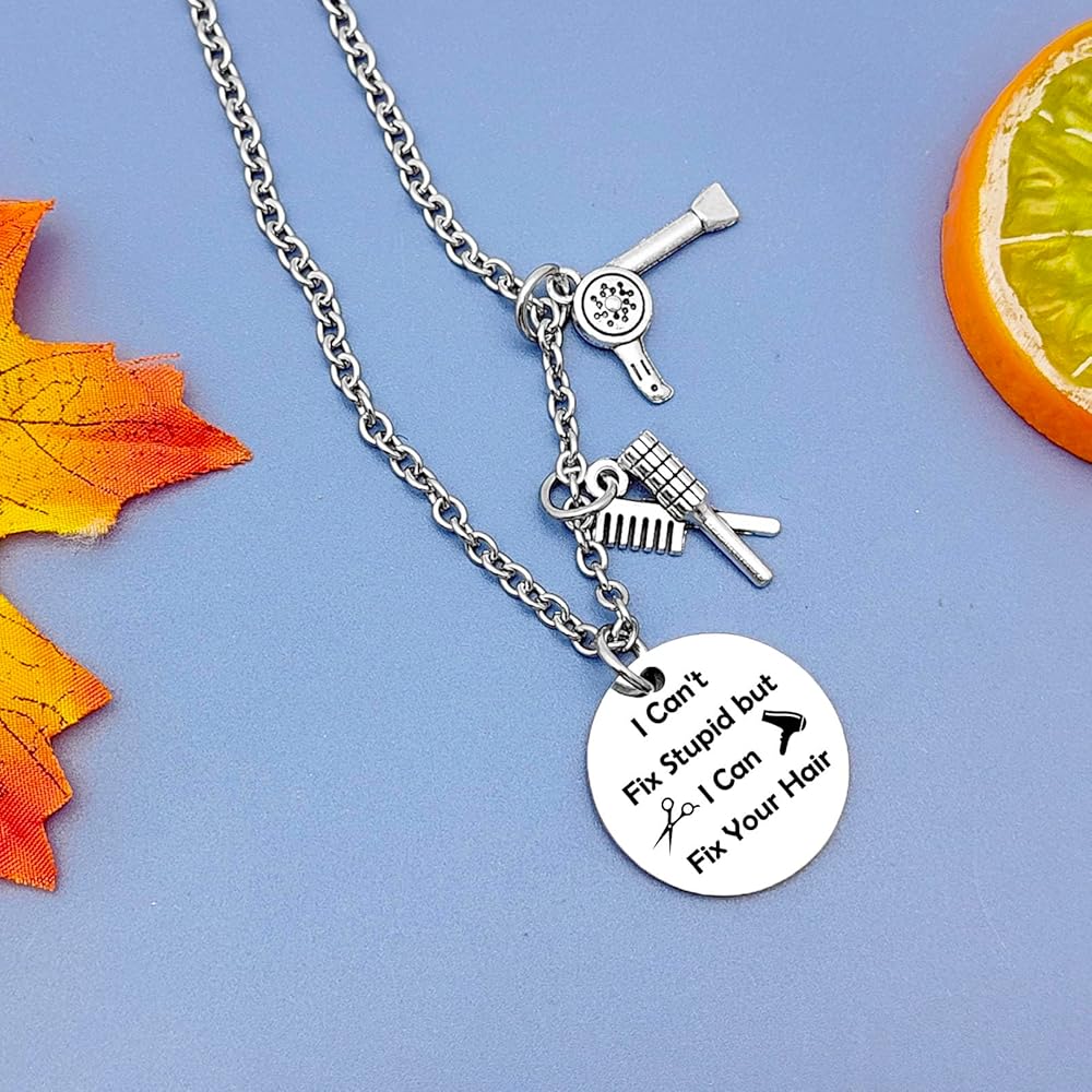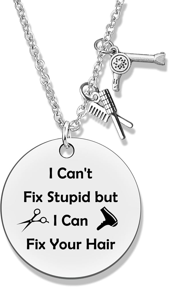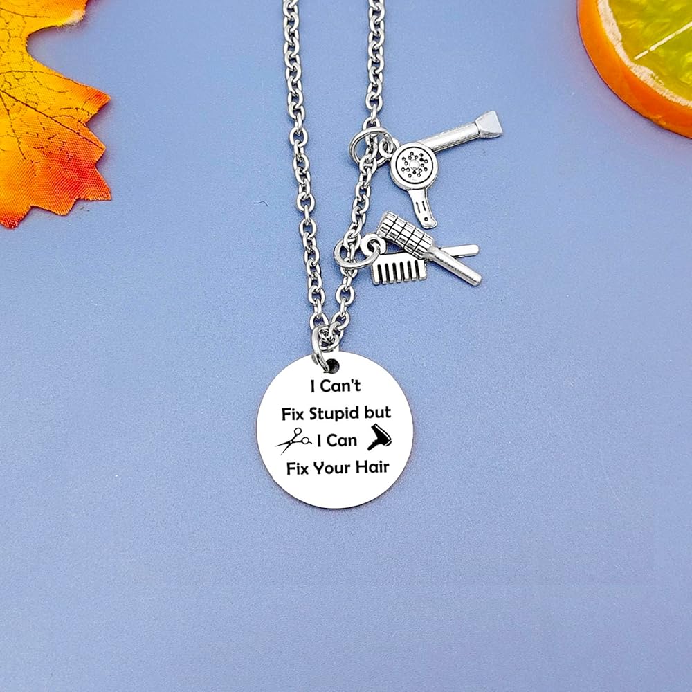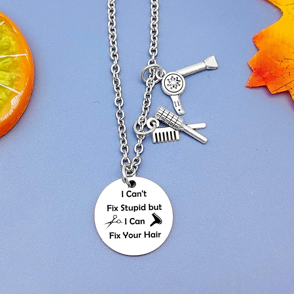 【Hair Stylist Gifts for Women Men】The necklace gift for hairdresser engraved with meaningful words--”I Can't Fix Stupid But I Can Fix Your Hair”. Your hairdressers will sense that you have a thorough awareness of their interests thanks to these thoughtful gifts. Additionally, it conveys how much you value their employment as a scissor-wielding customer service professional. This unique gift will be an unexpected gift that will be pure joy for both the recipient and the gift.