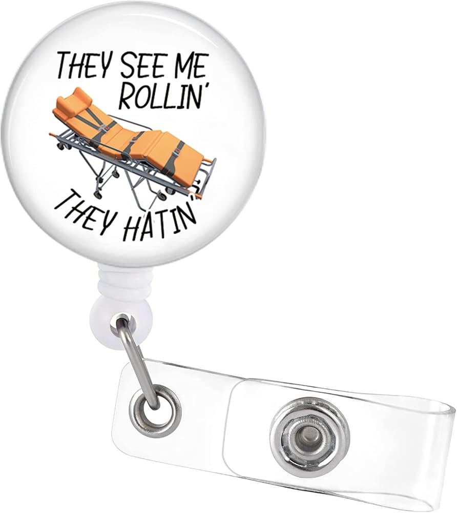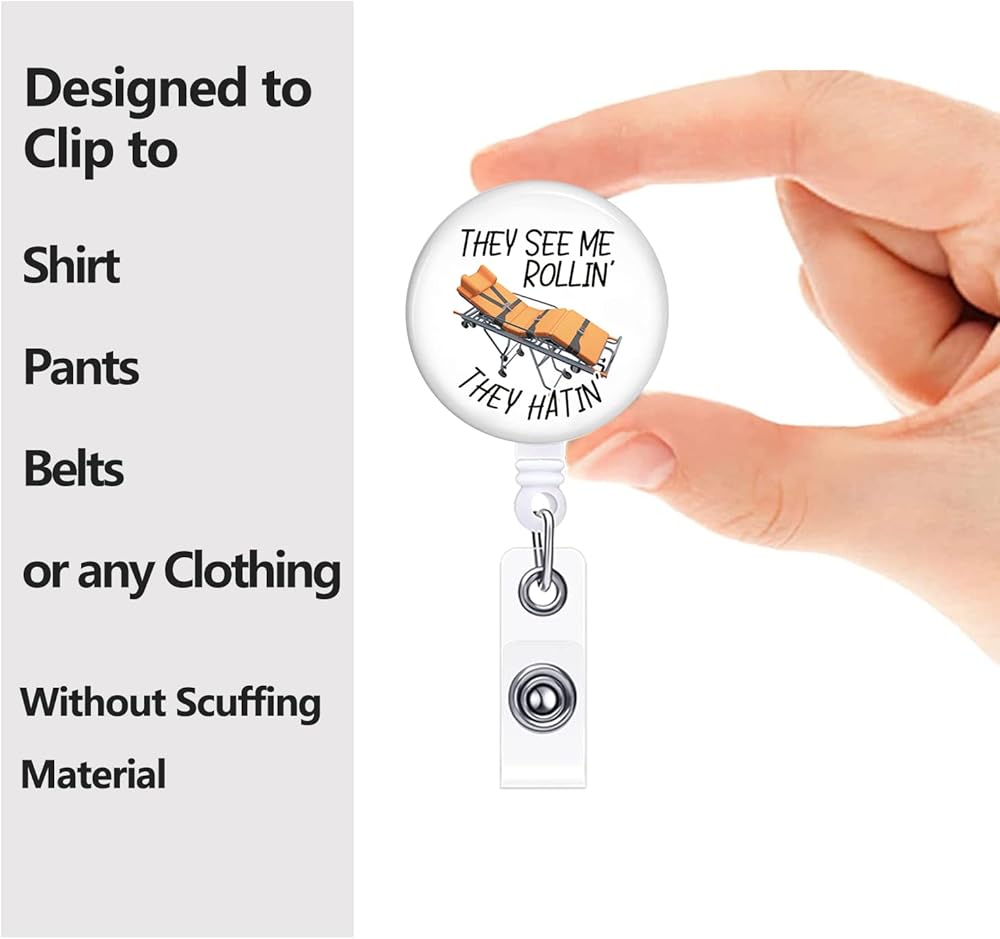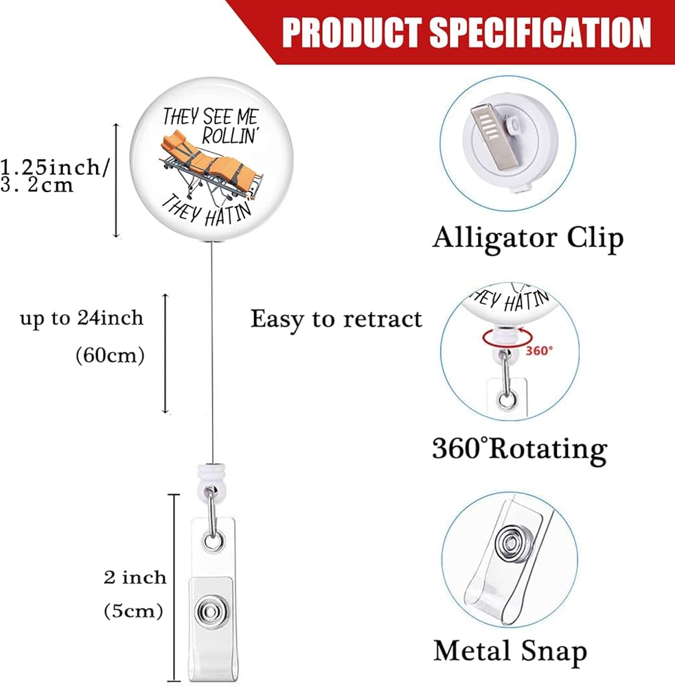 Badge Reel Retractable with Alligator Clip First Responder Ambulance Badge Holder for Paramedic EMT Medical Office Worker Name ID Decor