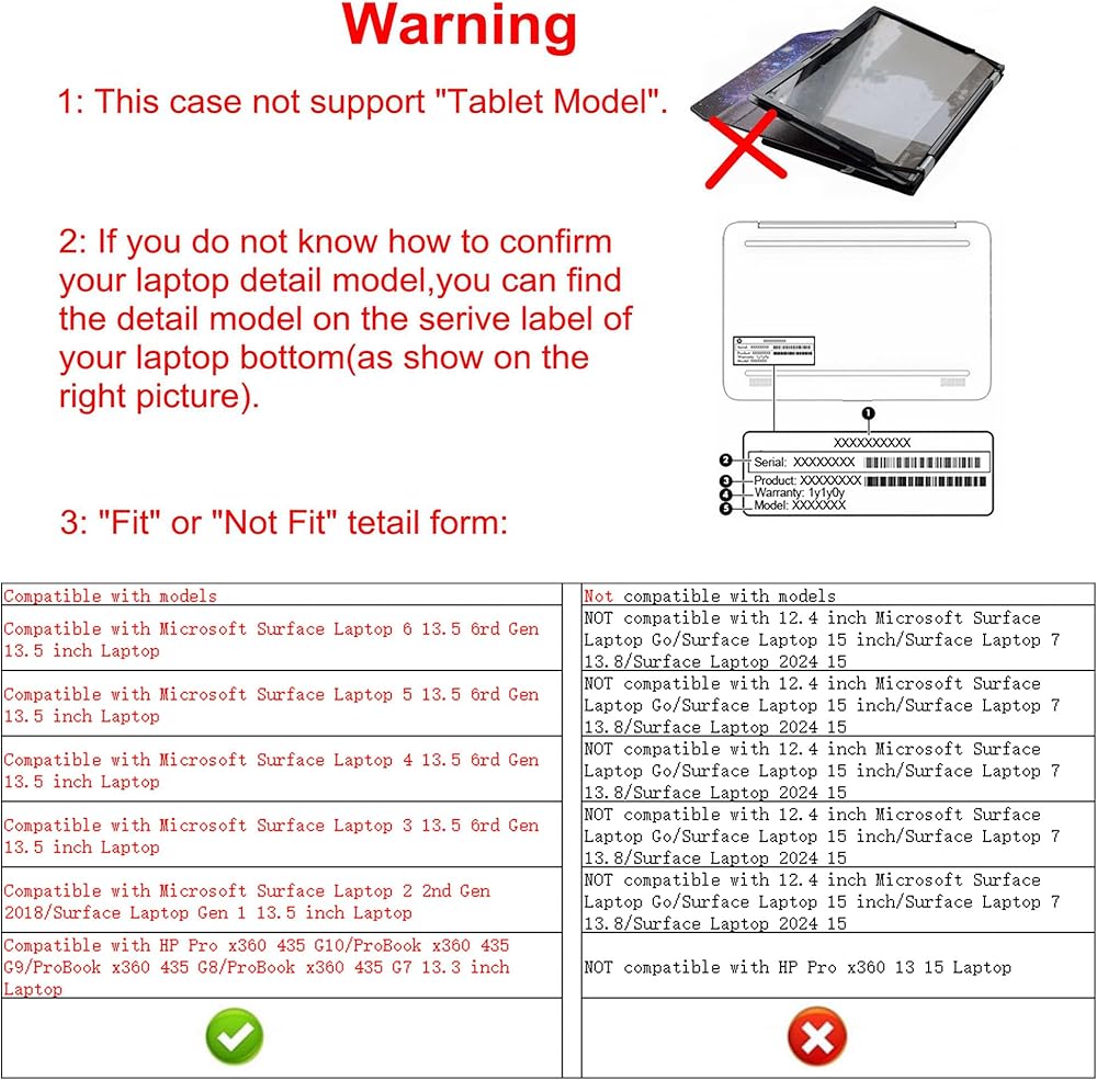 هذه الحافظة ليست حقيبة كمبيوتر محمول عالمية، كل حافظة مناسبة فقط لبعض موديلات الكمبيوتر المحمول بشكل خاص. إنها مصممة خصيصًا لجهاز Microsoft Surface Laptop 6 13.5 الجيل السادس/Surface Laptop 5 13.5 5rd 2022/Surface Laptop 4 13.5 4rd 2021/Surface Laptop 3 13.5 بوصة 2019/كمبيوتر محمول Surface 2 الجيل الثاني 2018/كمبيوتر محمول Surface Gen 1، حافظة لجهاز HP Pro x360 435 G10/ProBook x360 435 G9/ProBook x360 435 G8/ProBook x360 435 G7.