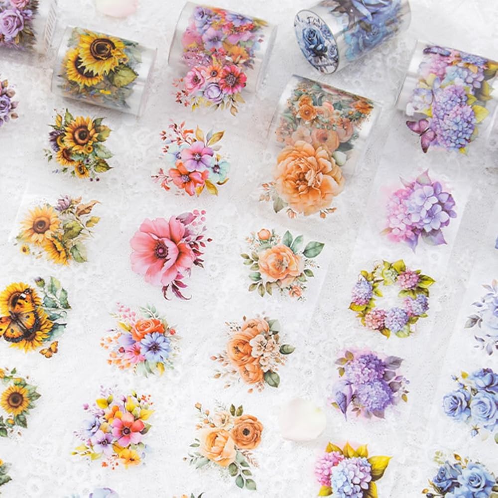 Widely Application: This set of flowers PET tape is perfect for junk journal, collage, vintage scrapbooking, gift wrapping, card making, and all kinds of flower theme DIY crafts decoration.