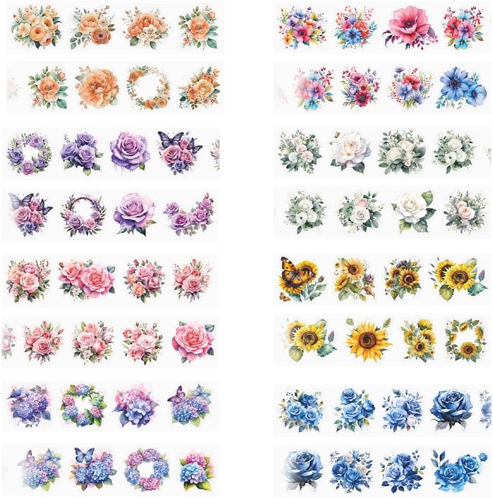 Variety Designs: The designs of this PET tape set are inspired by 8 different types of flowers, such as roses, sunflowers, etc.