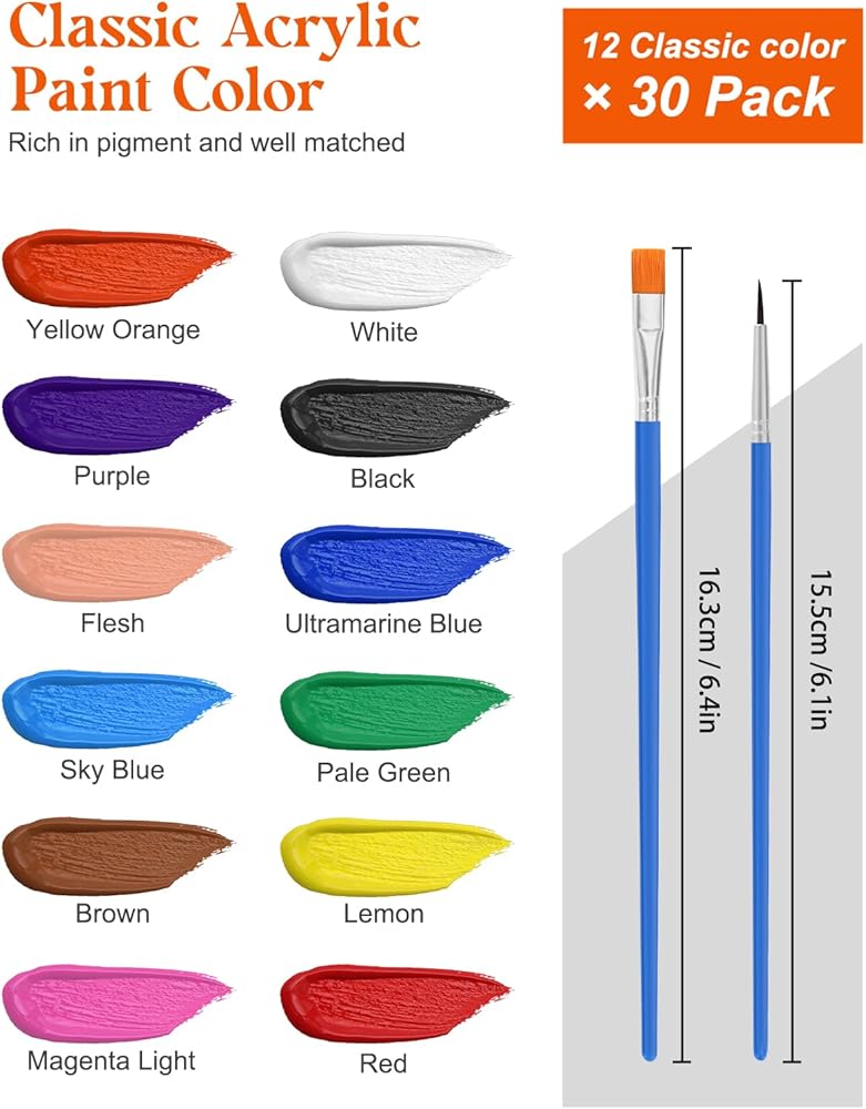 دهانات متعددة الاستخدامات: يتم وضع الطلاء كريميًا وحيويًا. رائعة للمراهقين والمبتدئين والفنانين لمجموعة واسعة من الأسطح، مثل القماش والسيراميك والخشب والنسيج والطين والجدران والأظافر والحرف اليدوية والمزيد. يستخدم الأطفال دهانات الأكريليك في دروس الفن ووقت الفراغ لتطوير مهارات الخيال ويرسم الكبار للاسترخاء وتعزيز الإبداع، وهو رائع لخلق فن زخرفي لمنزلك.
