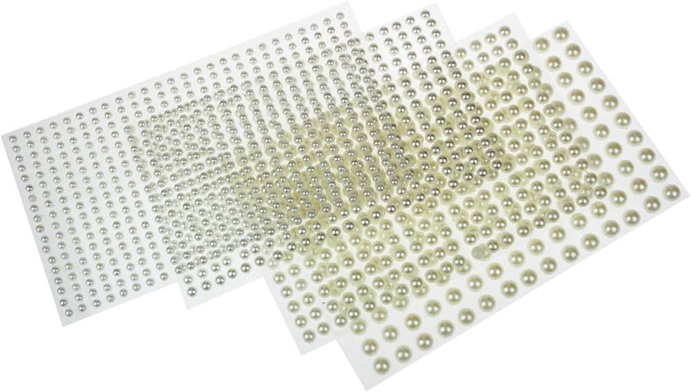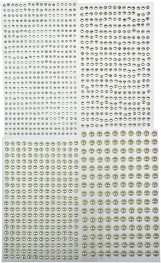 Contains 4 sheets of stickers, each sheet with different diameter adhesive gems, including 150pcs 8mm gems, 260pcs 6mm gems, 330pcs 5mm gems & 468pcs 4mm gems.