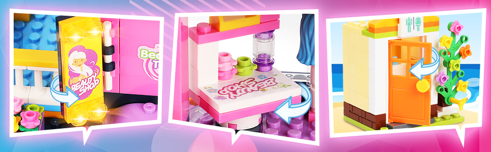 【مجموعة مكعبات بناء الأصدقاء】: تتضمن مجموعة مكعبات البناء 1373 قطعة بناء فريندز 2 في 1، ومتنزه فريندز المائي، ومكعبات بناء صالون فريندز للشعر، بمظهر أنيق وتفاصيل رائعة. تحتوي الحديقة المائية على حوض سباحة، و4 سيارات سباق، وزلاجة، وحوض أسماك، وصوت، وسرير شاطئ، وعصير فواكه، ومرحاض، وحوض استحمام ساخن، ومنطقة سرير نهاري، وما إلى ذلك. يشتمل صالون تصفيف الشعر على كرسيين لتصفيف الشعر، وأسرّة غسيل شعر قابلة للتدوير والاستلقاء، سجلات النقد والشامبو ومنتجات العناية بالشعر وما إلى ذلك.