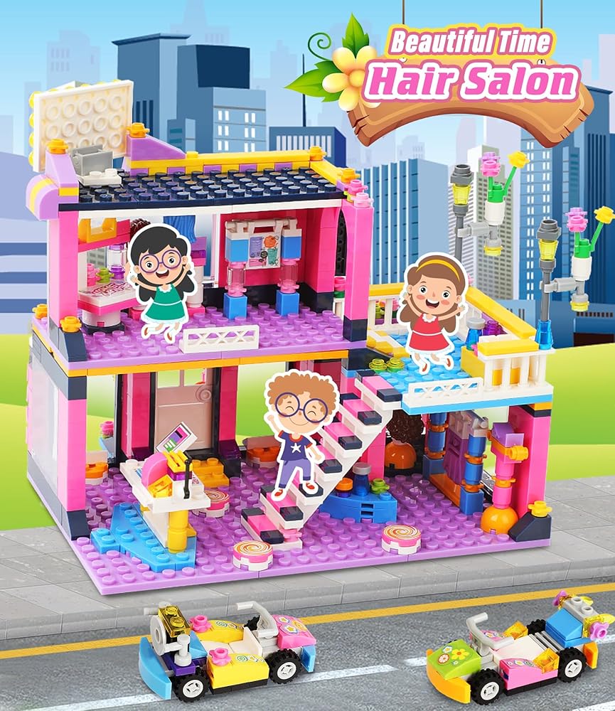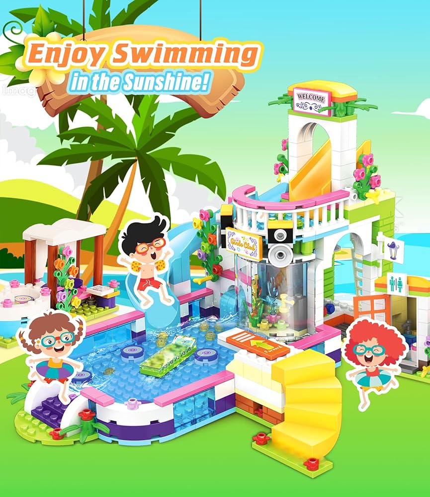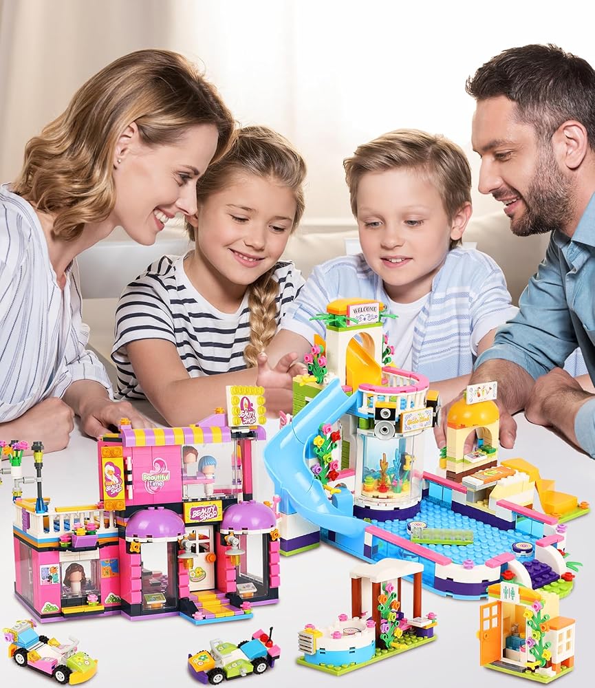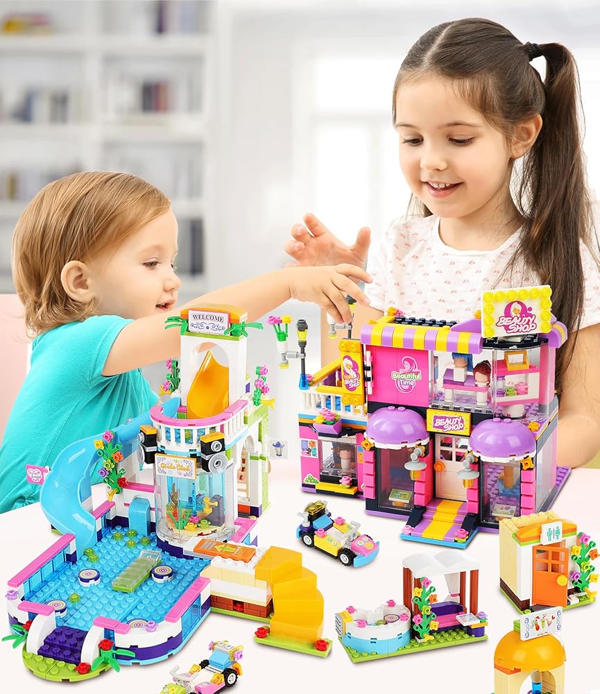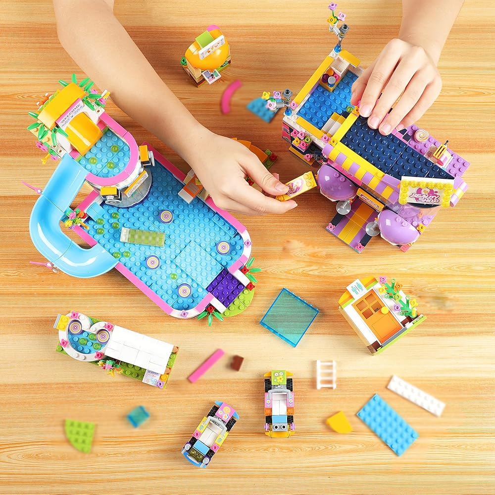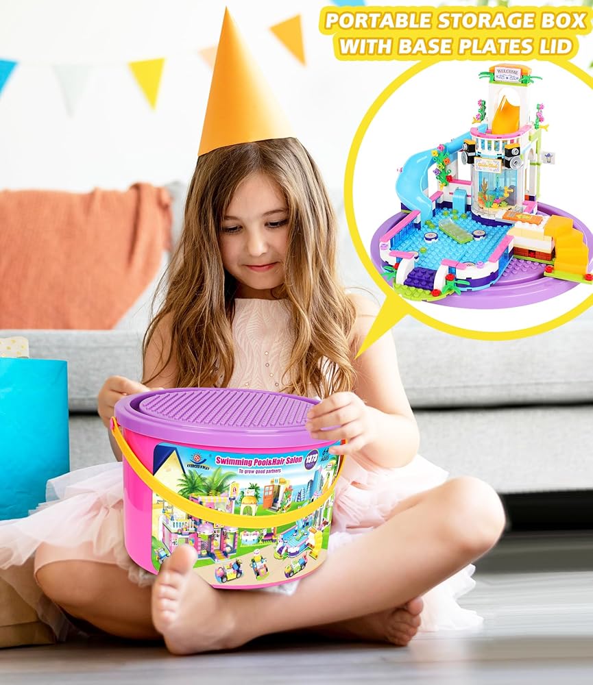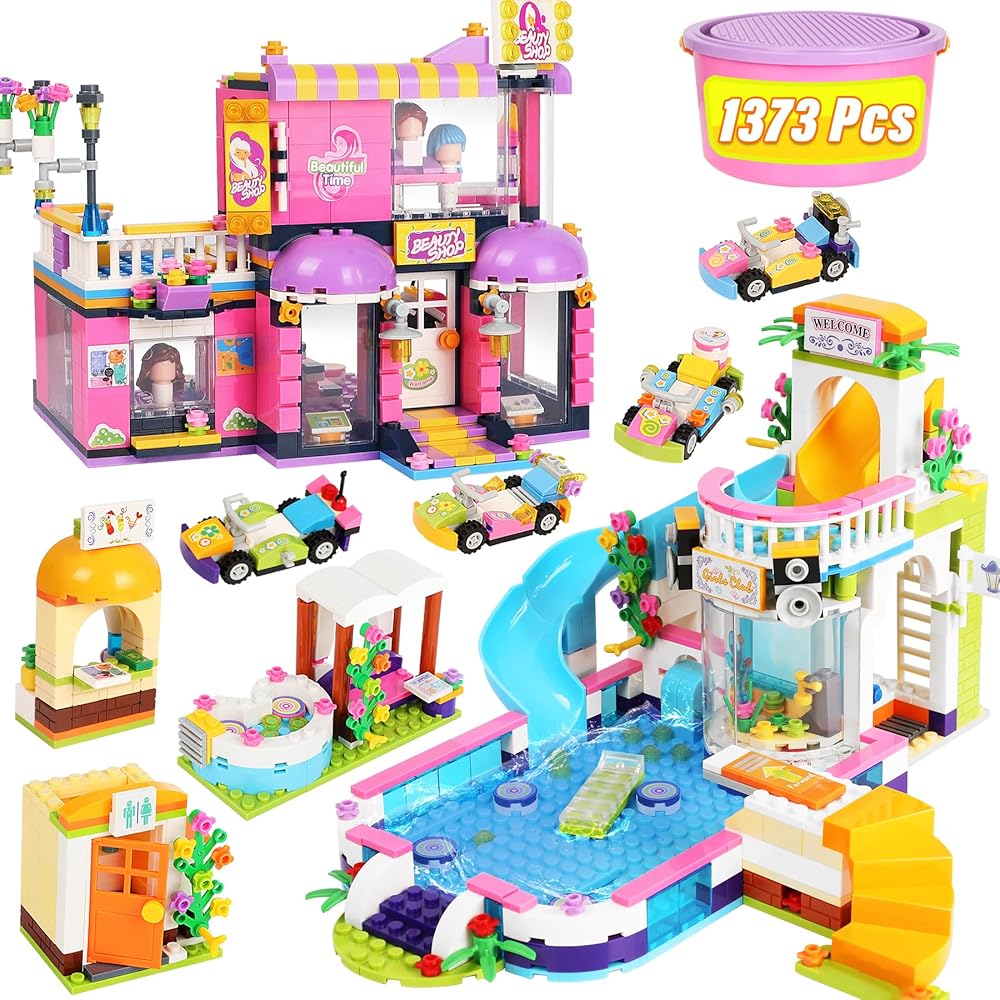 مجموعة بناء صالون شعر فريندز ووتر بارك للفتيات من سن 6 إلى 12 سنة، 1373 قطعة من مجموعات بناء حمام السباحة وتصفيف الشعر مع صندوق تخزين، مجموعة الأصدقاء هدية عيد ميلاد للأطفال