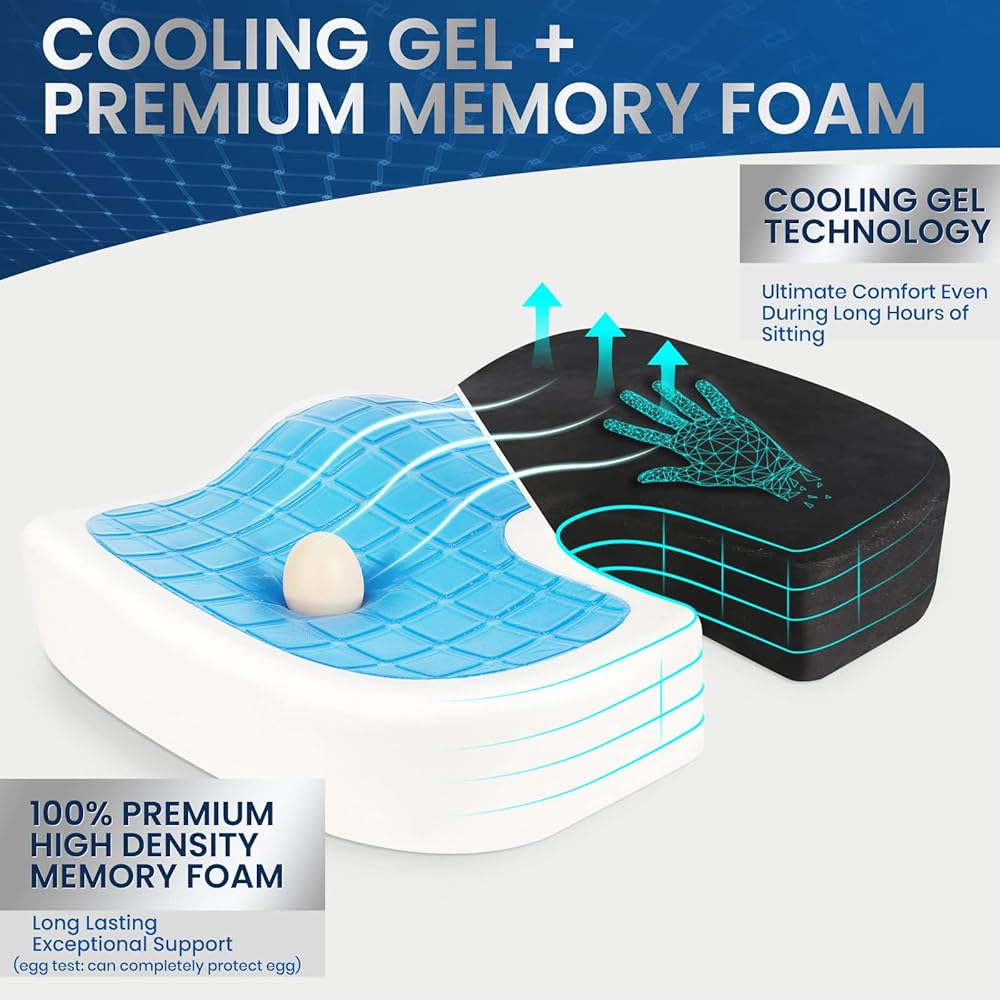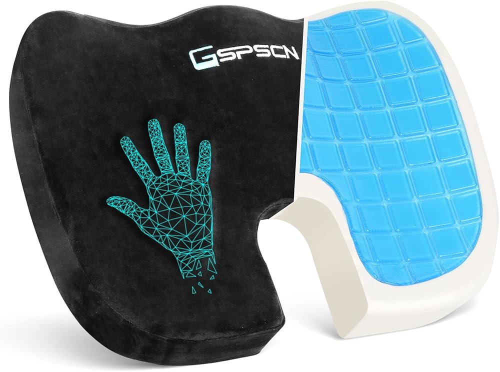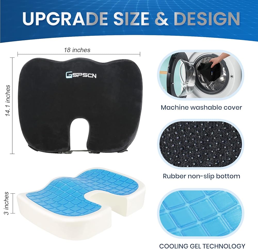 وسادة مقعد مريحة من إسفنج الذاكرة من GSPSCN، وسادة لتقويم العظام غير قابلة للانزلاق مع وسادة جل تبريد لعظم الذنب عرق النسا وتخفيف آلام أسفل الظهر - كراسي المكتب، كرسي مكتب الكمبيوتر