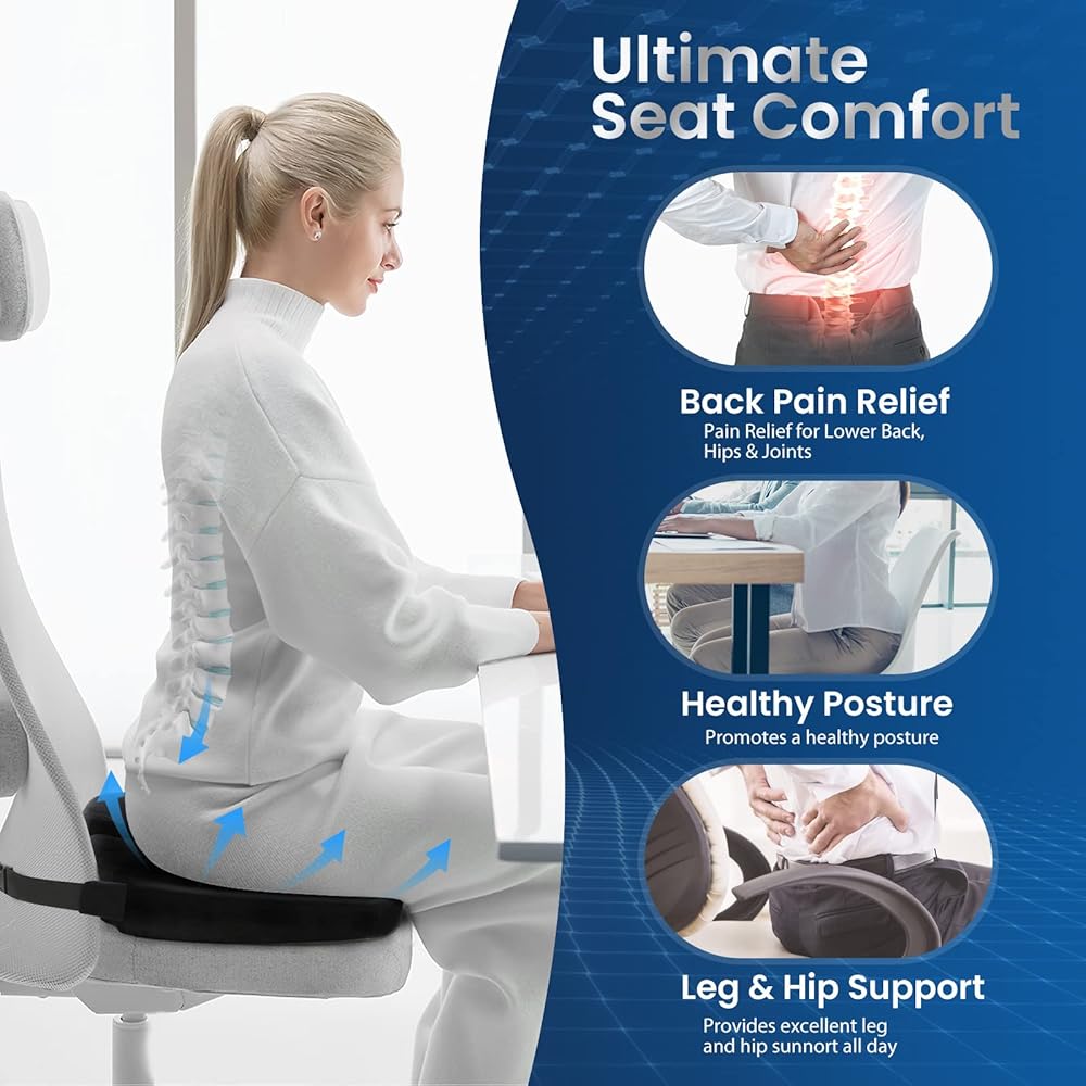 ✔️شكل U مريح: التصميم على شكل حرف U، مع مركزه المقطوع وسطحه الانسيابي، يزيل الضغط من العصعص لضمان تحوم عظمة الذيل على سطح المقعد، وبالتالي تخفيف أي إزعاج ناتج عن الجلوس لفترات طويلة.