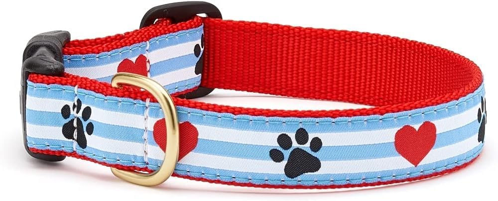 Up Countrys ribbon collars leads and harnesses come in a wide variety of lengths and in three widths Ribbon collars are made from hightensile strength nylon webbing with sewn on polyesternylon ribbons Our ribbons are stain and fray resistant designed to last a lifetime All collar and lead hardware is cast not welded brass for extra strength Our buckles are Coast Guard approved for high weight hold Machine wash cold air dry Features. Pawprint Stripe Pet Collar. Quality selection for everyday pet needs. Assured hygiene and care for petsSpecifications. Design Pawprint Stripe. Size Small Wide. Wide 1. Narrow 58. Teacup 12. Weight 05 lbs