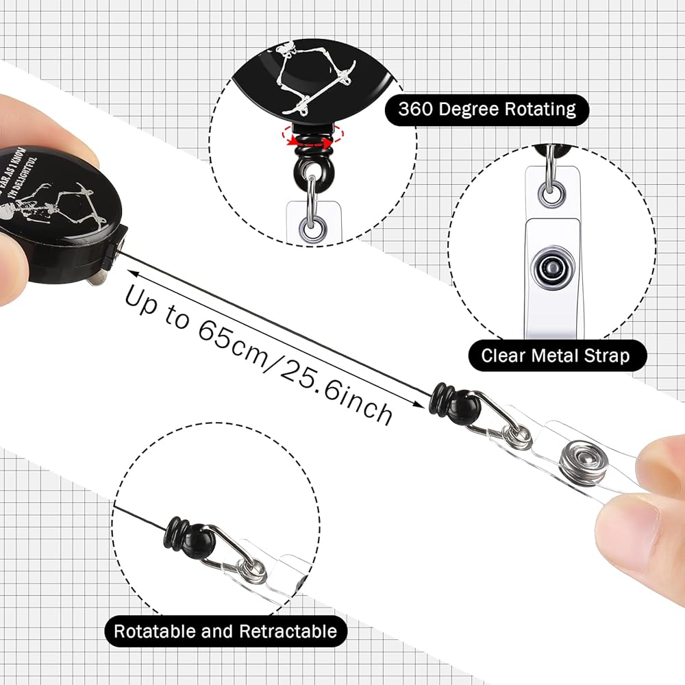The retractable badge reels clip is cute and interesting, matched with classic black and white, suitable for using as gifts to your family, friends, coworkers, nurses, doctors, helping them to collect the name or ID cards.