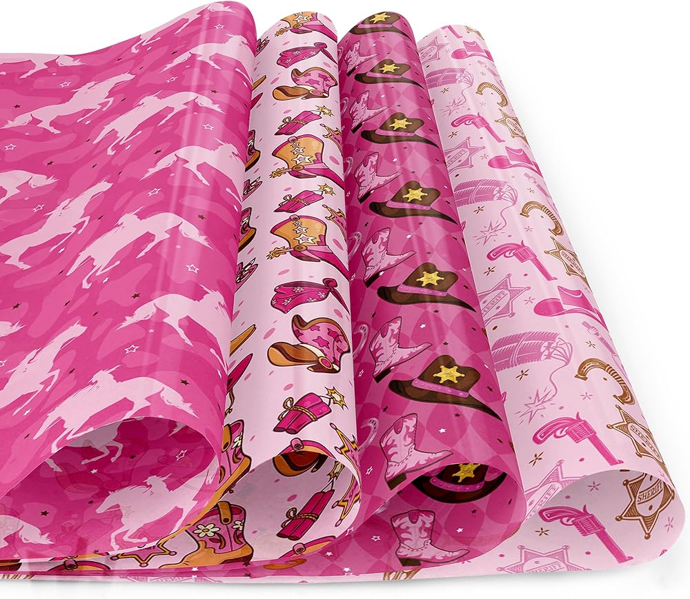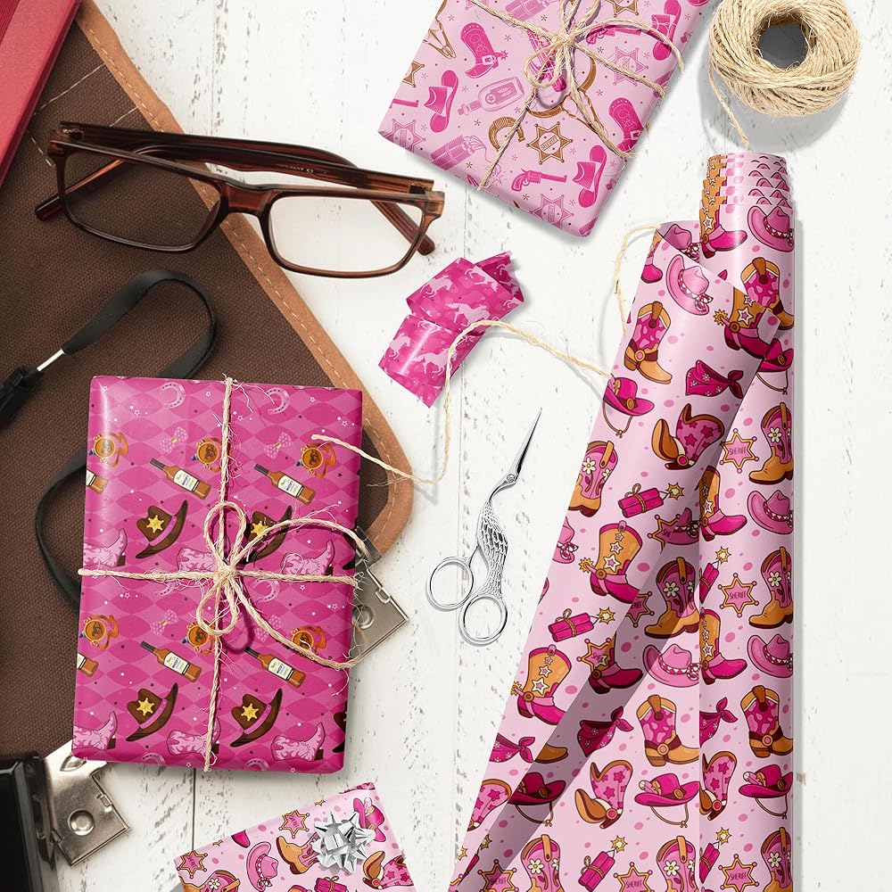 تصميم رعاة البقر الغربي الوردي: يعتمد ورق تغليف الهدايا الغربي الخاص بنا على اللون الوردي كألوان موضوعية، ومطبوع بعناصر راعية البقر الغربية البرية، رقيقة ورائعة، تظهر بشكل كبير سحر الحفلة التي تحمل عنوان راعية البقر الغربية، مفعمة بالحيوية ومليئة بالحيوية، أنيقة ورقيقة مستلزمات رائعة للتغليف.