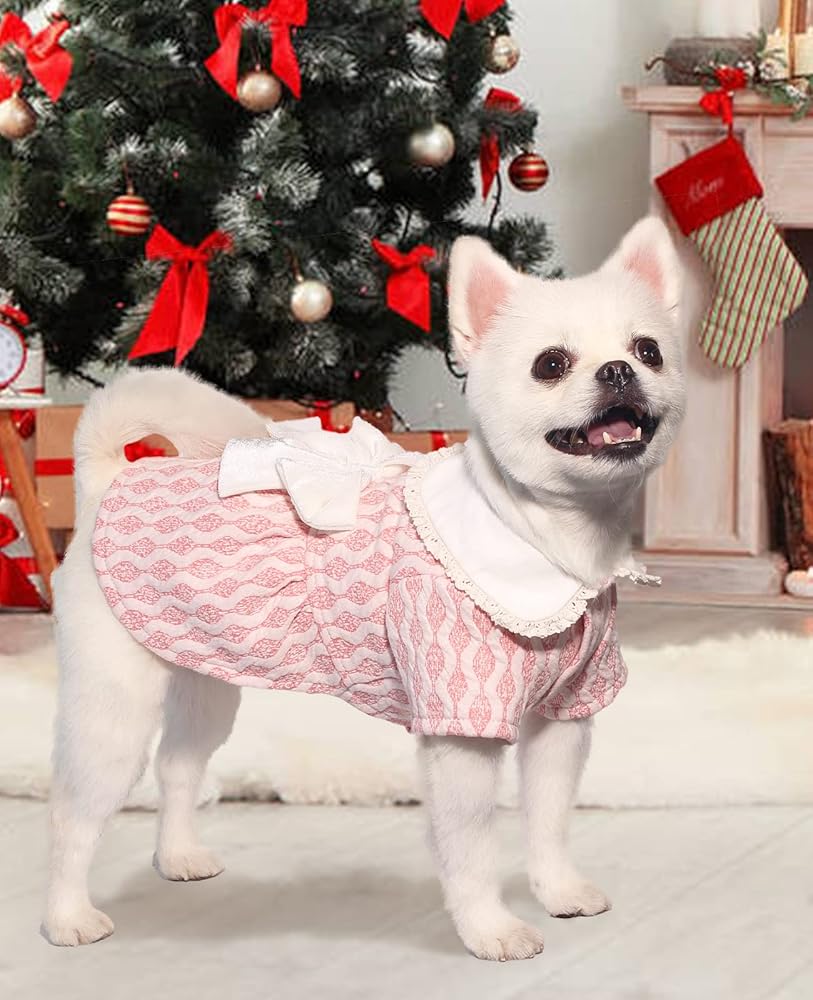 • 【تصميم فريد】- يتميز فستان عيد ميلاد الكلاب من توبكينز بنمط مخطط مموج مع قوس مخملي أبيض على الظهر ليجعل جروك أو قطتك يبدو أكثر حيوية وحلاوة.