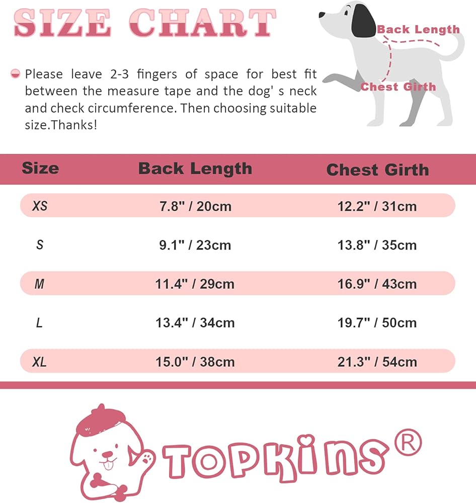 • 【المقاس】- كبير جدًا: (طول الظهر 15.0 بوصة، محيط الصدر 21.3 بوصة) فساتين الكلاب من توبكينز للحيوانات الأليفة الصغيرة مناسبة للكلاب/القطط الصغيرة، وليس للكلاب الكبيرة. إذا كان مقاس حيوانك الأليف يقع بين مقاسين، فيُنصح باختيار مقاس أكبر، شكرًا.