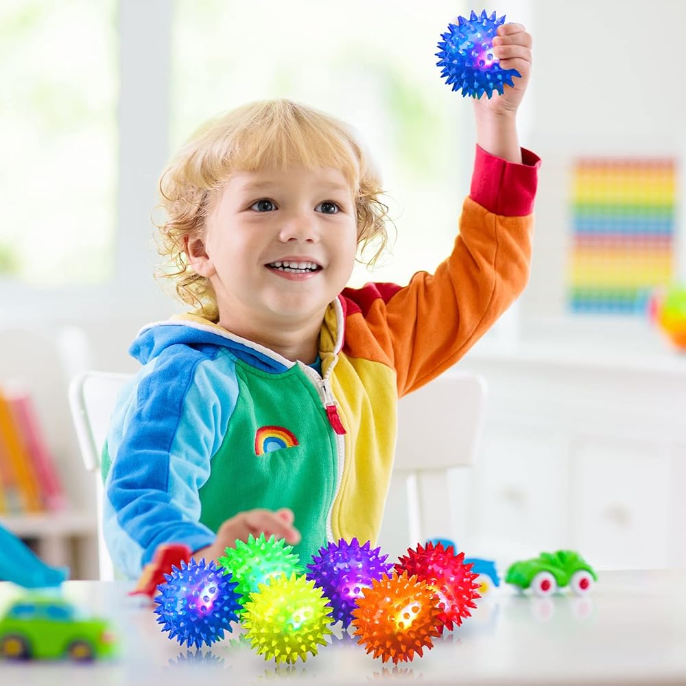 ناعمة ومريحة: كل كرة وامضة ذات نتوءات مصنوعة من مطاط ناعم، مرنة جدًا وموثوقة، وآمنة، بدون رائحة كريهة، مع سطح مزخرف ناعم، مريح الملمس.