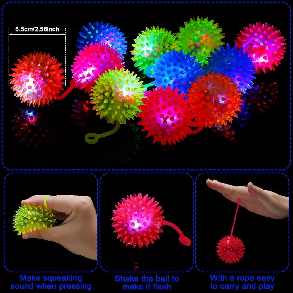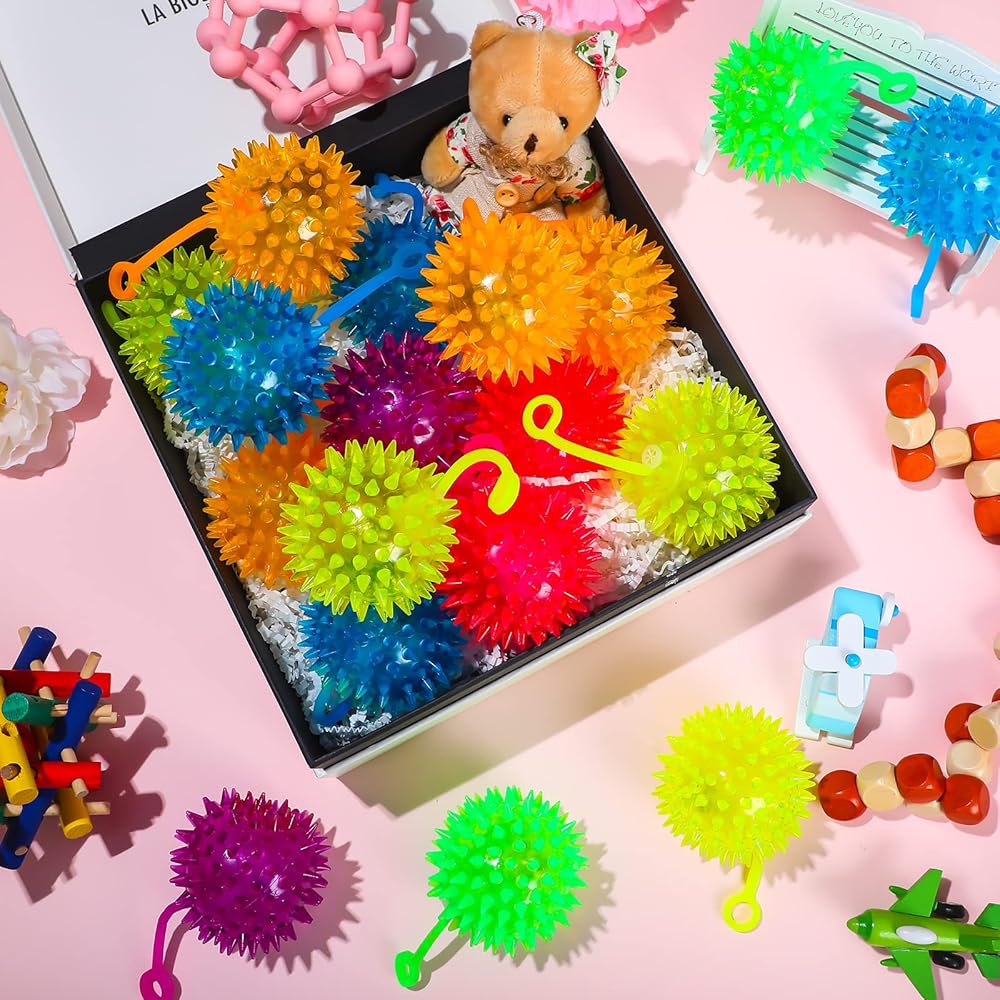 36 حزمة من الكرات النطاطة المضيئة للأطفال، كرة شائكة LED مع حبل، ألعاب حسية، كرات الضغط تنمو في الظلام، كرات وامضة للحفلات، مكافآت مدرسية للطلاب، البالغين، 2.6 بوصة