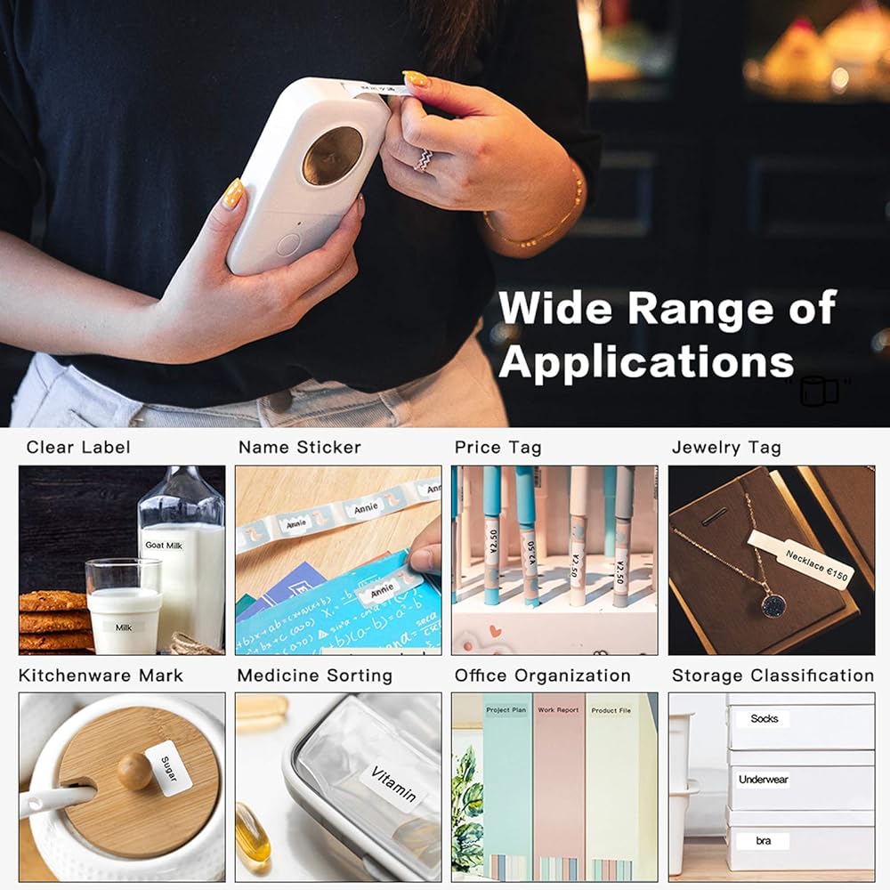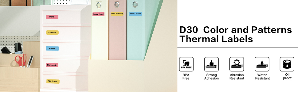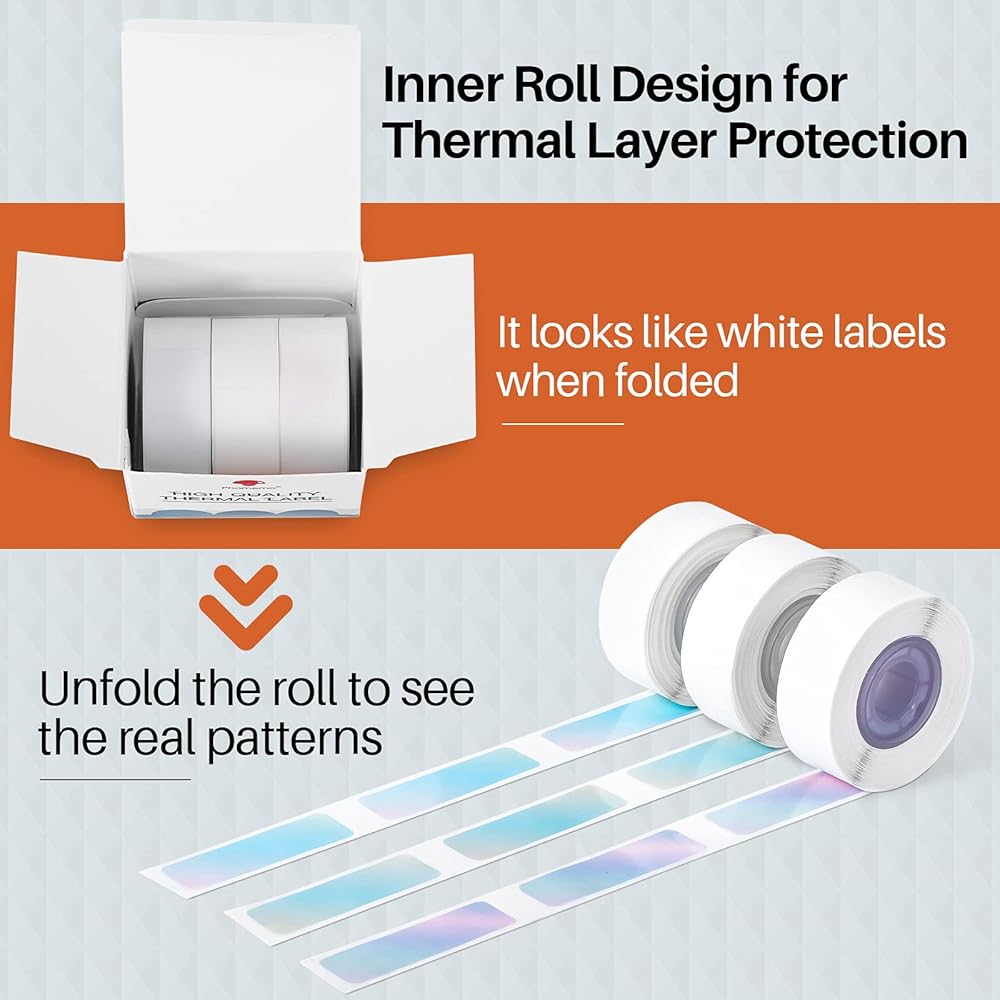 • الميزات العملية: أشرطة الملصقات الحرارية D30 مقاومة للماء والزيوت ومضادة للخدش، مما يساعدك على الاحتفاظ بالملصقات لفترة أطول بكثير من الملصقات التقليدية
