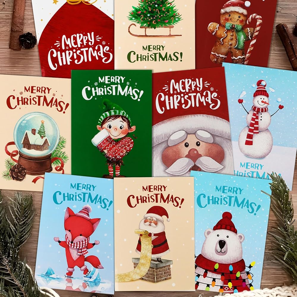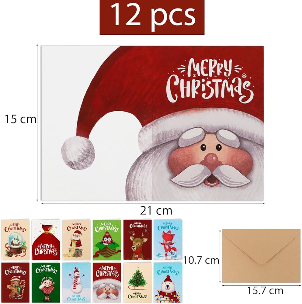 You will receive 12 pcs kids Christmas cards and 12 pcs envelopes.