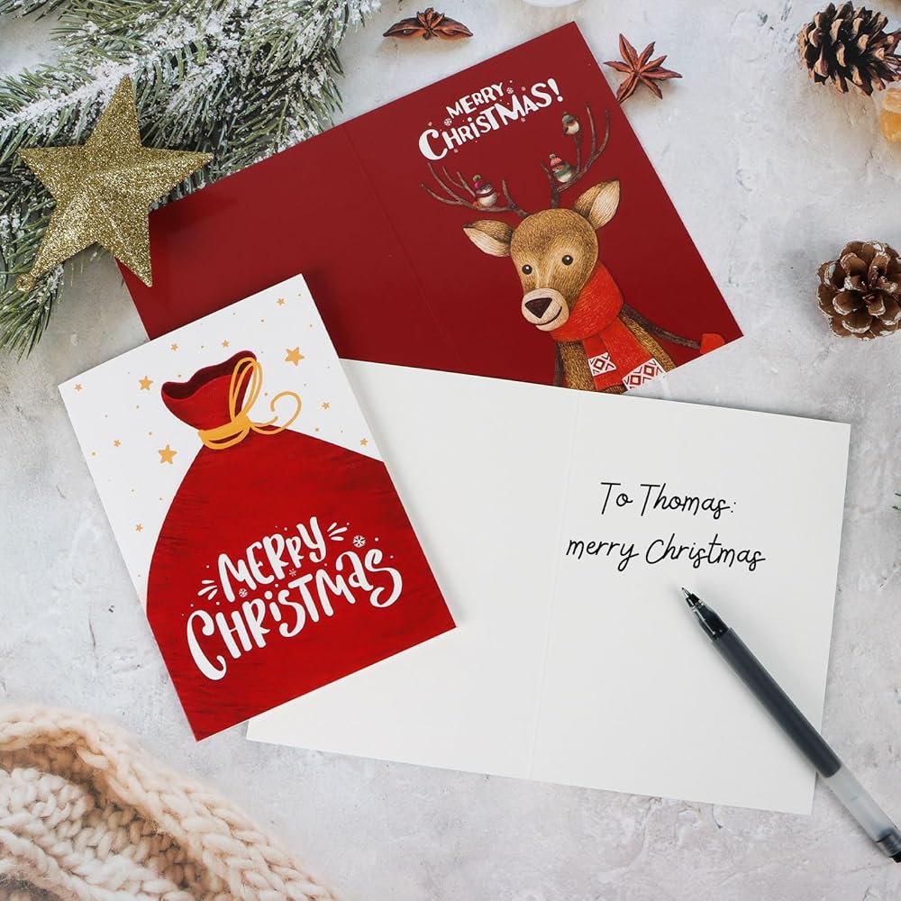 Blank inside:The inside of the kids Christmas cards is blank,there are enough space for you to write your own message.