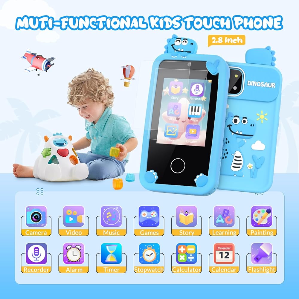 [لعبة هاتف ممتعة وتعليمية للأطفال] مع شاشة مقاس 2.8 بوصة، يوفر هذا الهاتف الذكي للأطفال ساعات من المرح والتعلم لطفلك. يمكنهم تعلم الحروف الأبجدية والفواكه والحيوانات أثناء لعب الألعاب التي تعزز مهاراتهم المعرفية. تعمل وظائف البيانو والرسم على تشجيع الإبداع، بينما يساعد الاستماع إلى اللغة الإنجليزية وقراءة القصص على تحسين المهارات اللغوية. بالإضافة إلى ذلك، فهو يأتي مزودًا بأدوات عملية مثل التقويم والمؤقت وساعة المنبه والآلة الحاسبة والمصباح اليدوي. امنح طفلك هدية التعليم والترفيه مع هذه اللعبة الرائعة.