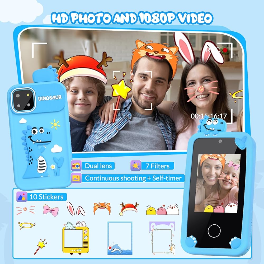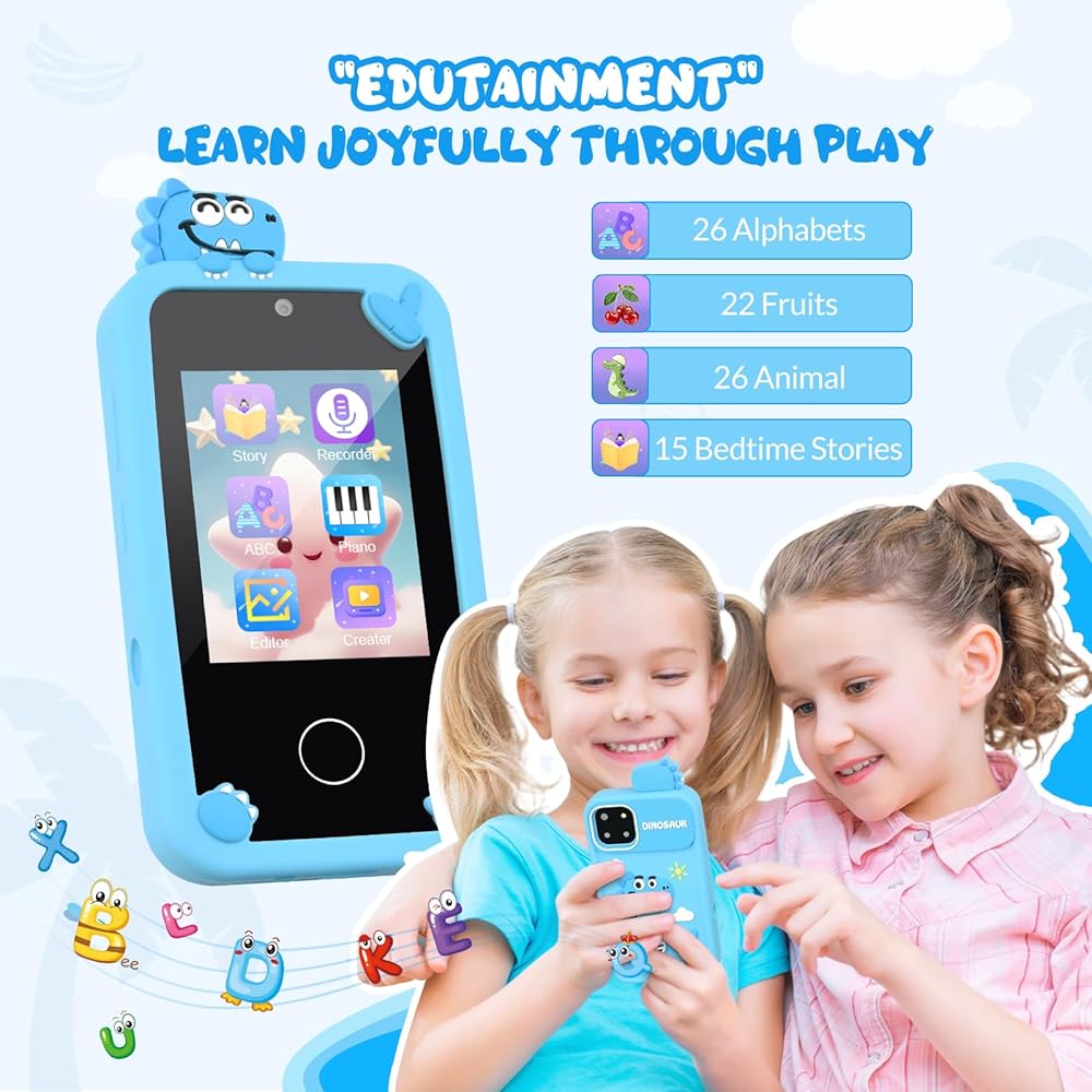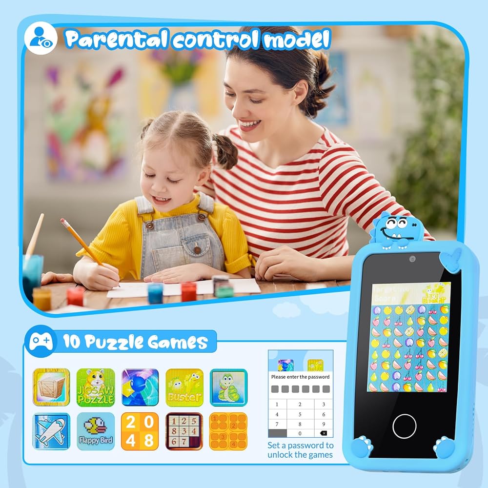 [هدية رائعة للأطفال] يُعد هذا الهاتف الذكي للأطفال بمثابة هدية مثالية لعيد الميلاد أو الكريسماس أو المهرجانات أو العطلات للأولاد والبنات من سن 3 إلى 10 سنوات. سيحب الأطفال التقاط المشاهد والحيوانات في الطبيعة باستخدام هواتفهم المحمولة اللطيفة للغاية. كمكافأة، يمكن للوالدين أخيرًا أن يشعروا براحة البال عندما يعلمون أن طفلهم لديه هاتف مزيف خاص به ولن يحتاج بعد الآن إلى استخدام هاتفه الذكي.