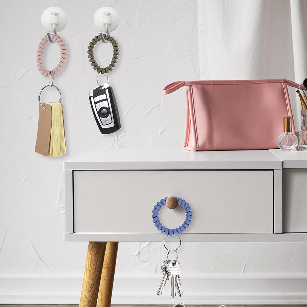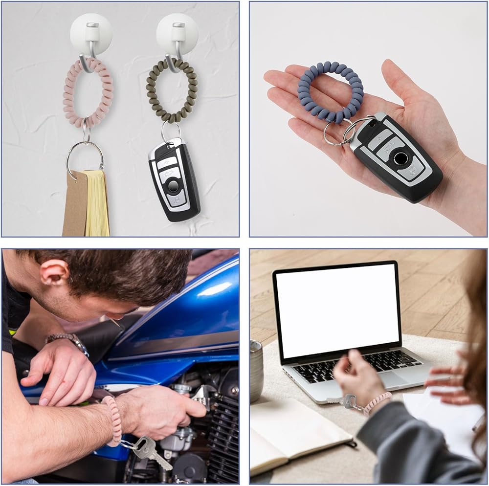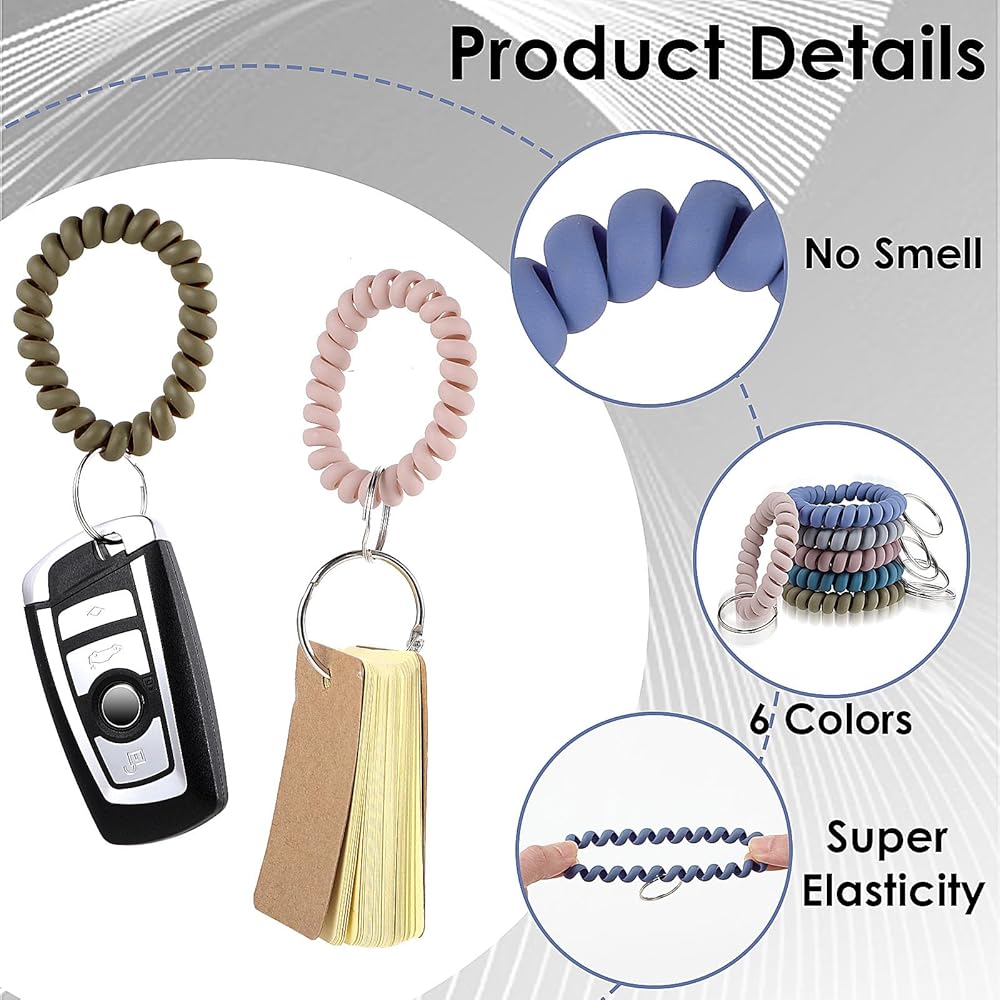 【Widely Used】Remove the metal key rang to be good work as hair ties,will not hurt your hair. As coil wristband is comfortable and secure,and also is a beautiful fashion bracelet;good gifts for mom,girl and friends.Also Leaving key ring of wrist Key coil, it will be good for holding key,whistle,number band when wear or hood.