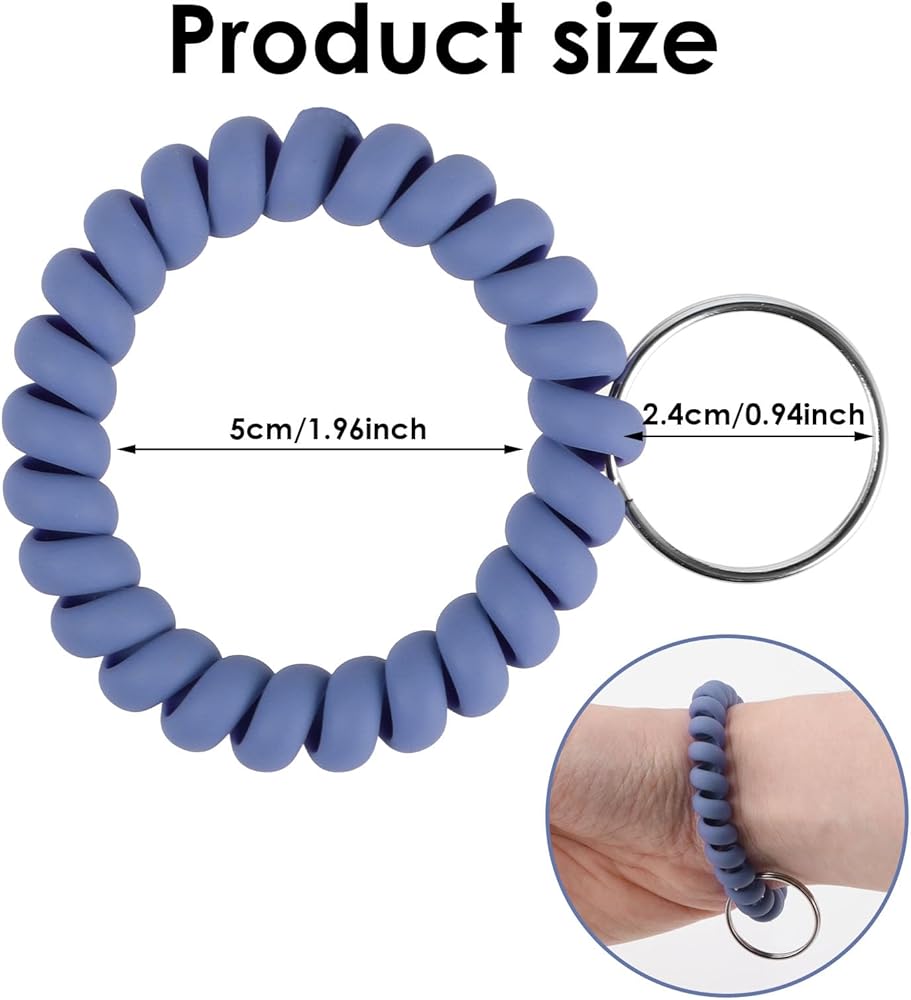 【High-quality Material】1.6 inches inside diameter spiral wristband fits most adults wrist with a 0.98 inch metal key ring to hold keys,number bands. High quality material, waterproof, soft and flexible, sturdy and durable.