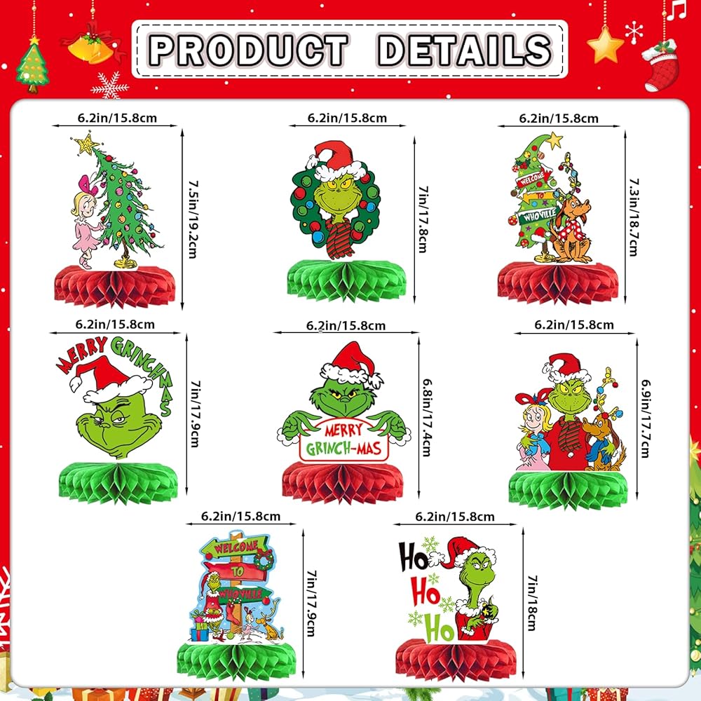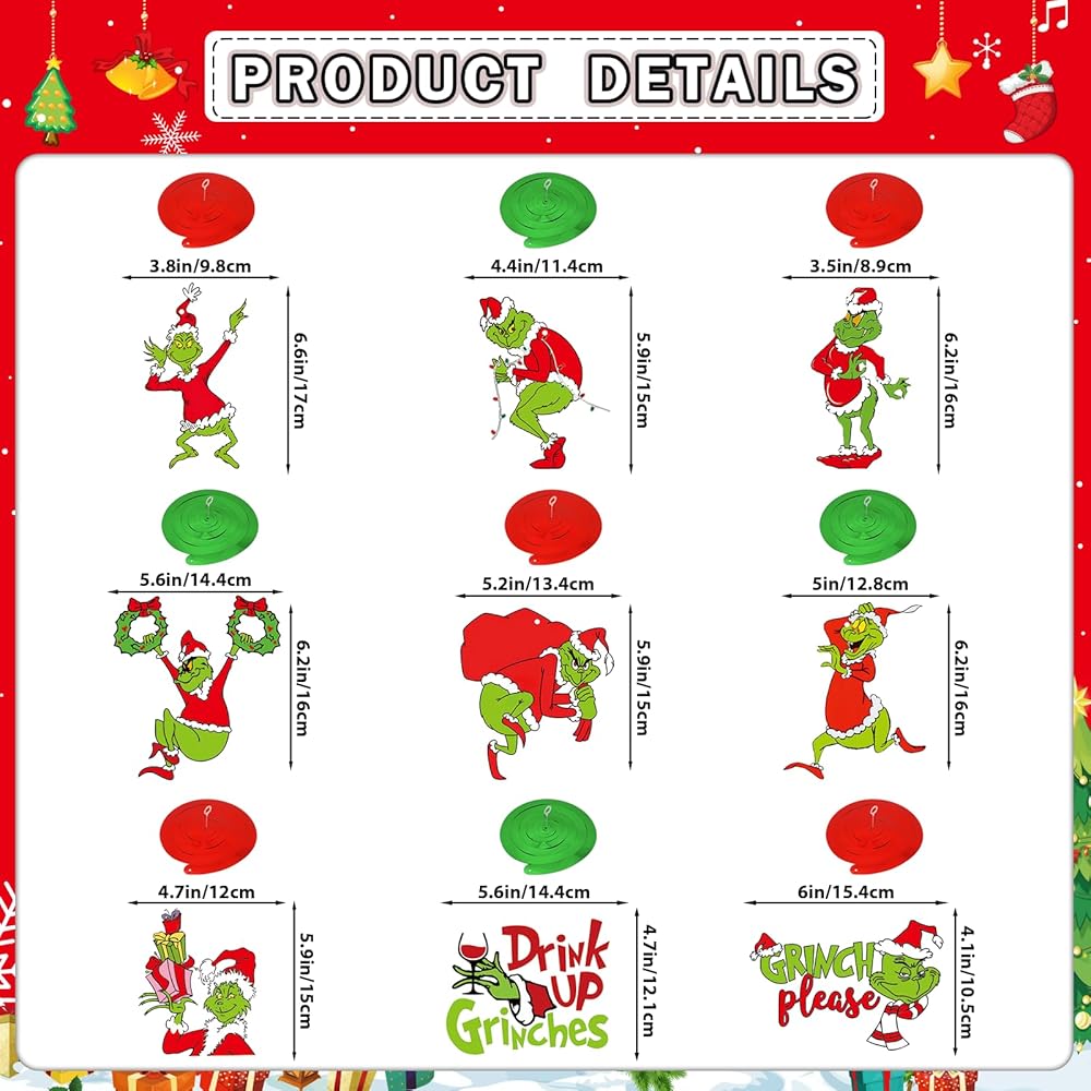 المناسبات المناسبة: مثالية لديكورات حفلات الوحش الأخضر، وهدايا رائعة للأصدقاء والعائلة. قم بتعليق لافتة عيد الميلاد الوحش الأخضر هذه والقطع المركزية الملونة على الزاوية على الطاولات، والجدران، والأشجار، والأسوار، والفناء، والشرفة الأمامية، وغرفة المعيشة وأينما تريد؛ يمكن أن يساعدك أيضًا على ربط البالونات.