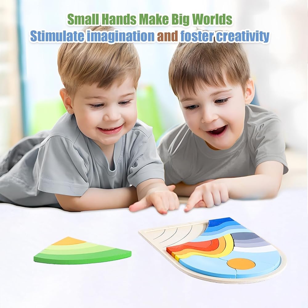 [ألوان وأنماط لافتة للنظر] : ألغاز Lasoba Kids لقوس قزح، ألغاز خشبية للأطفال ألعاب الأولاد 3-5 بألوان قوس قزح زاهية وأشكال لطيفة يمكن أن تعزز اهتمام الأطفال الصغار بطبيعة السماء والأرض والغابة. توجد رسومات مرجعية مخططة على لوحة الألغاز لتقليل صعوبة اللغز ومساعدة الأطفال على التعرف على الألوان والأشكال بسهولة