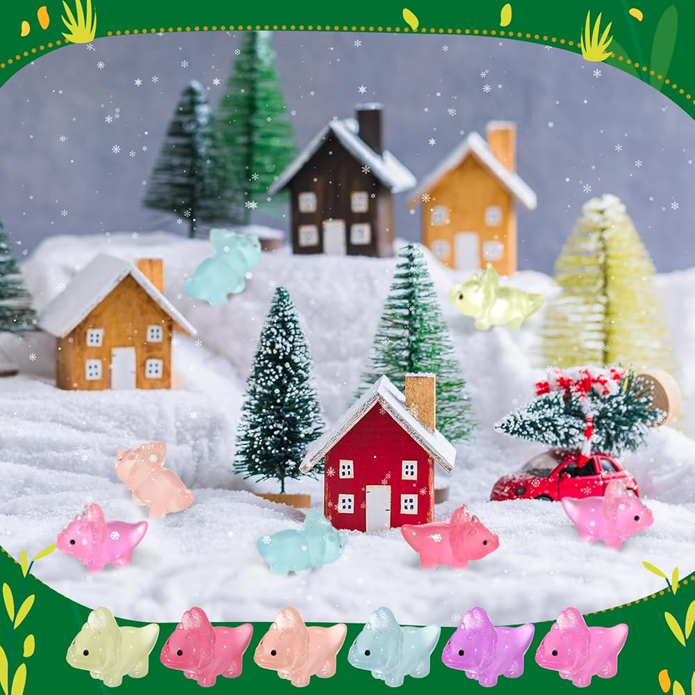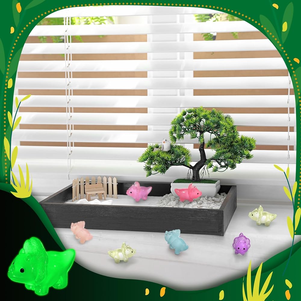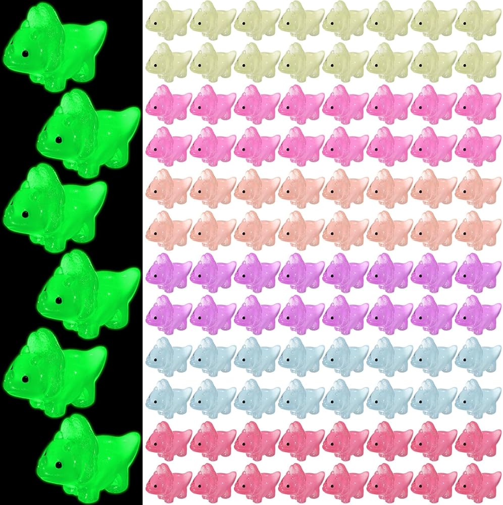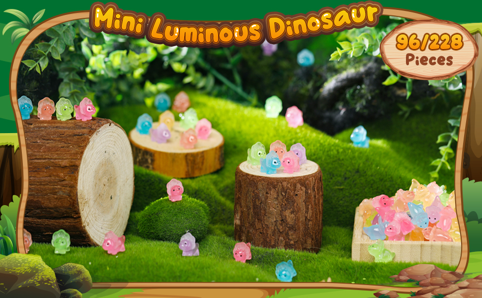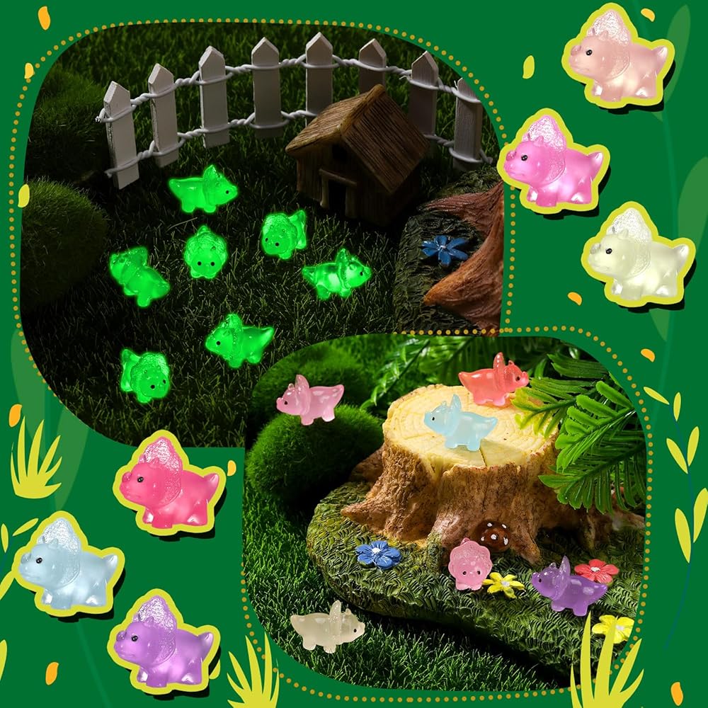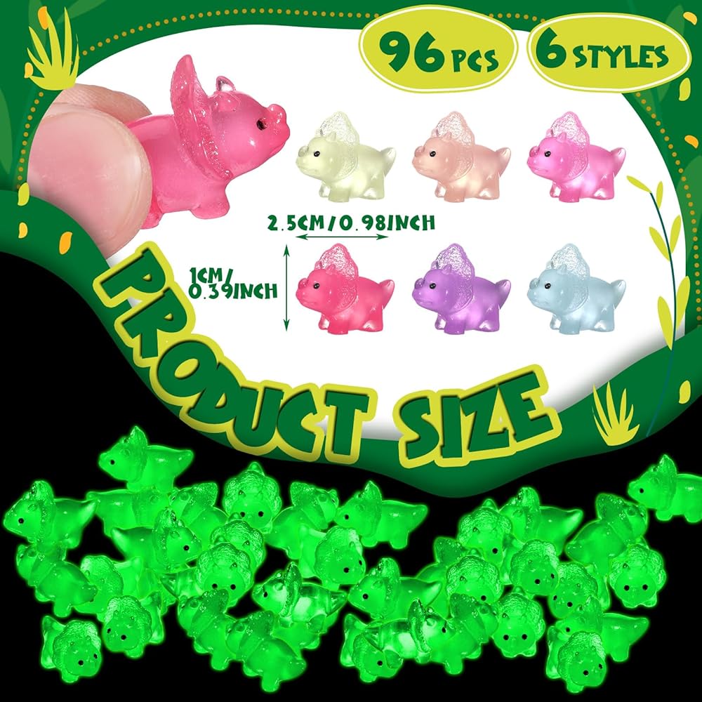 96 قطعة من ألعاب الديناصورات الصغيرة المضيئة تتوهج في الظلام، تماثيل ديناصورات صغيرة من الراتنج، تماثيل ديناصورات صغيرة للحديقة والمناظر الطبيعية وحوض السمك وديكور بيت الدمى، حشو بينياتا (لون لطيف)