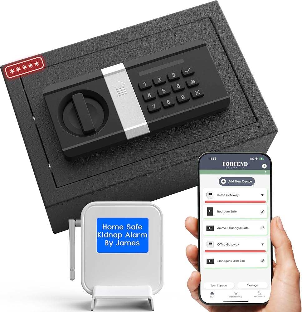 هيكل الأمان الفائق: تم تصميم خزنة FORFEND الذكية باستخدام تقنية الانحناء المتطورة والقطع بالليزر الدقيقة، وباب مقاوم للنقب ومسامير قفل مباشر مقاس 2 × 0.8 بوصة توفر حماية متينة وموثوقة. سيؤدي أي تحرك أو اقتحام للخزنة أيضًا إلى إطلاق إنذار فوري لجميع الأجهزة ذات الصلة.
